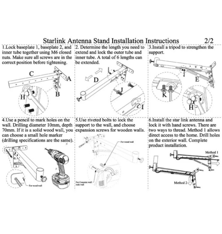 Starlink Mounting Kit for V2 Gen2 Adjustable Long Wall Mount Roof Pole Mount Kit