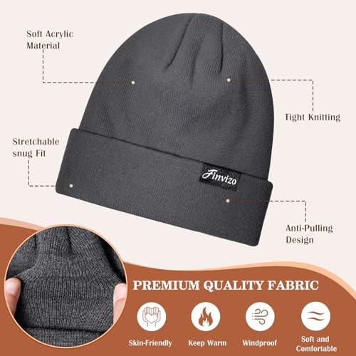 Winter Beanie Hats for Men Women: 4 Pack Knit Cuffed Brown, Red, Green, Orange