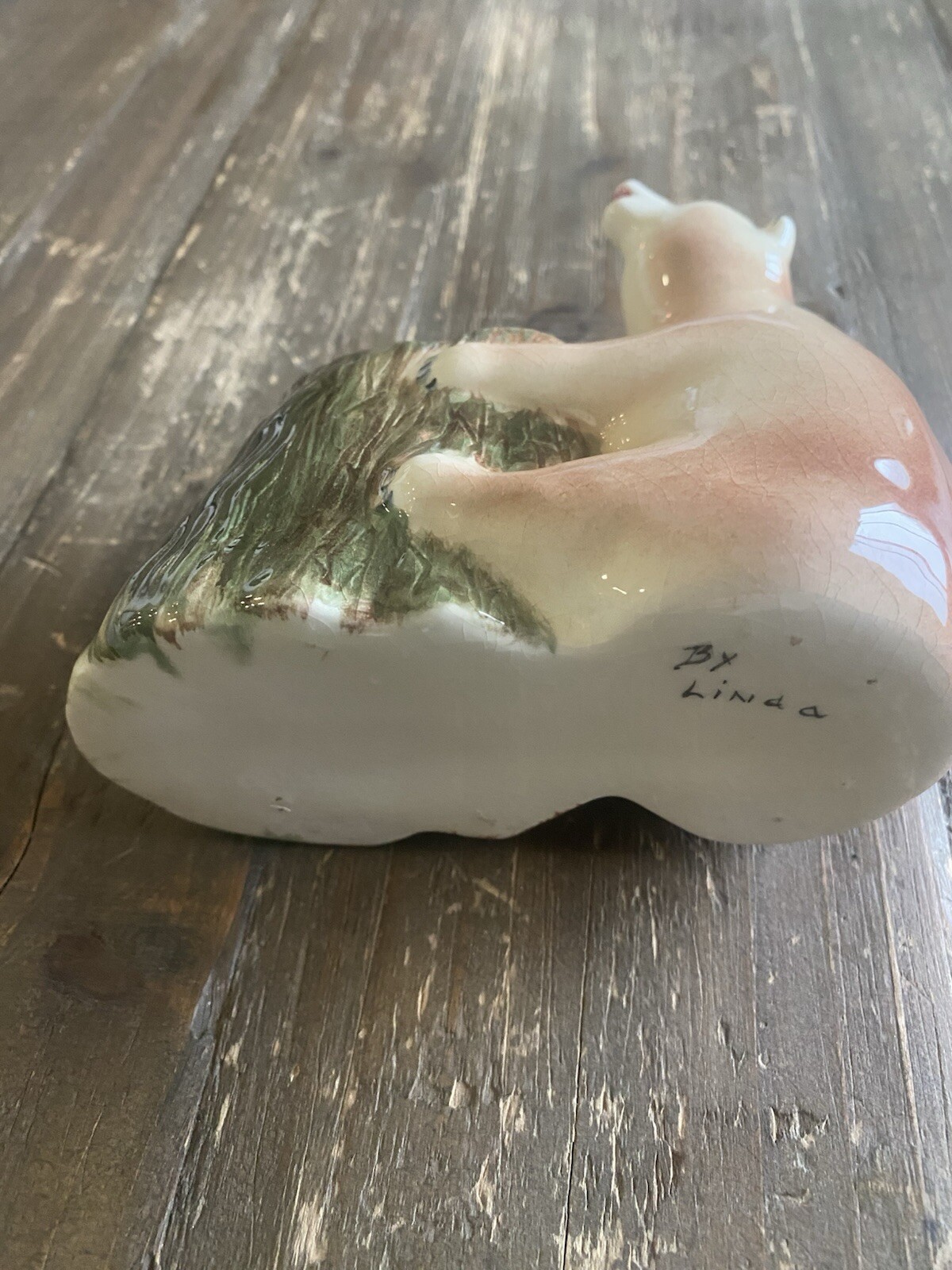 • Vintage Mid Century Bear Cub on Tree Planter Vase Baby or Shower Artist Signed