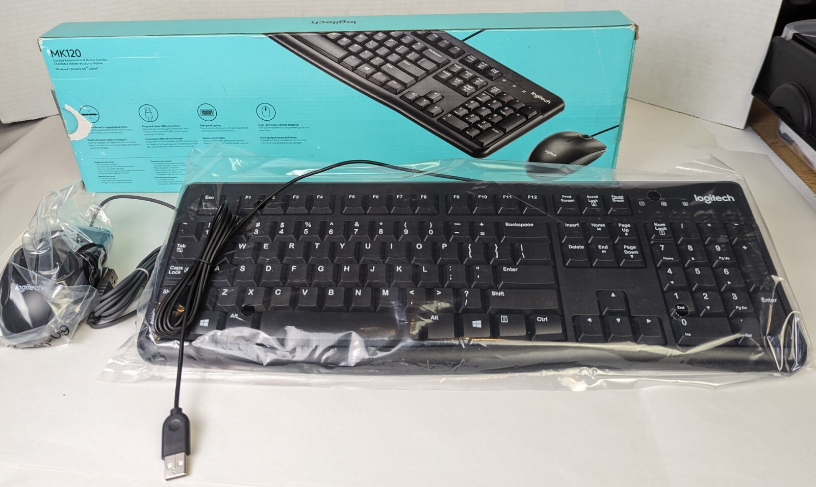 Logitech MK120 Wired USB Keyboard Mouse Desktop Combo Set - New Open Box