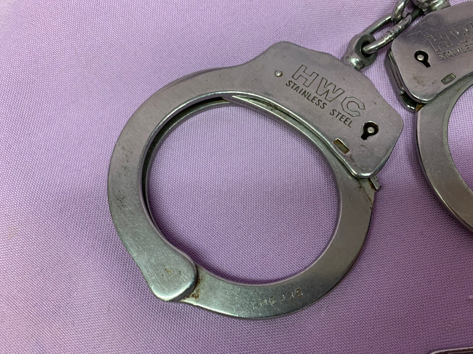 как выглядит Vintage HWC Stainless Steel Handcuffs Double Locking Police With Key Rare фото