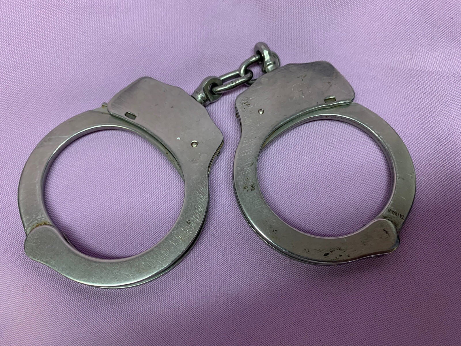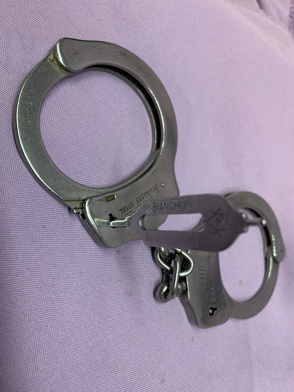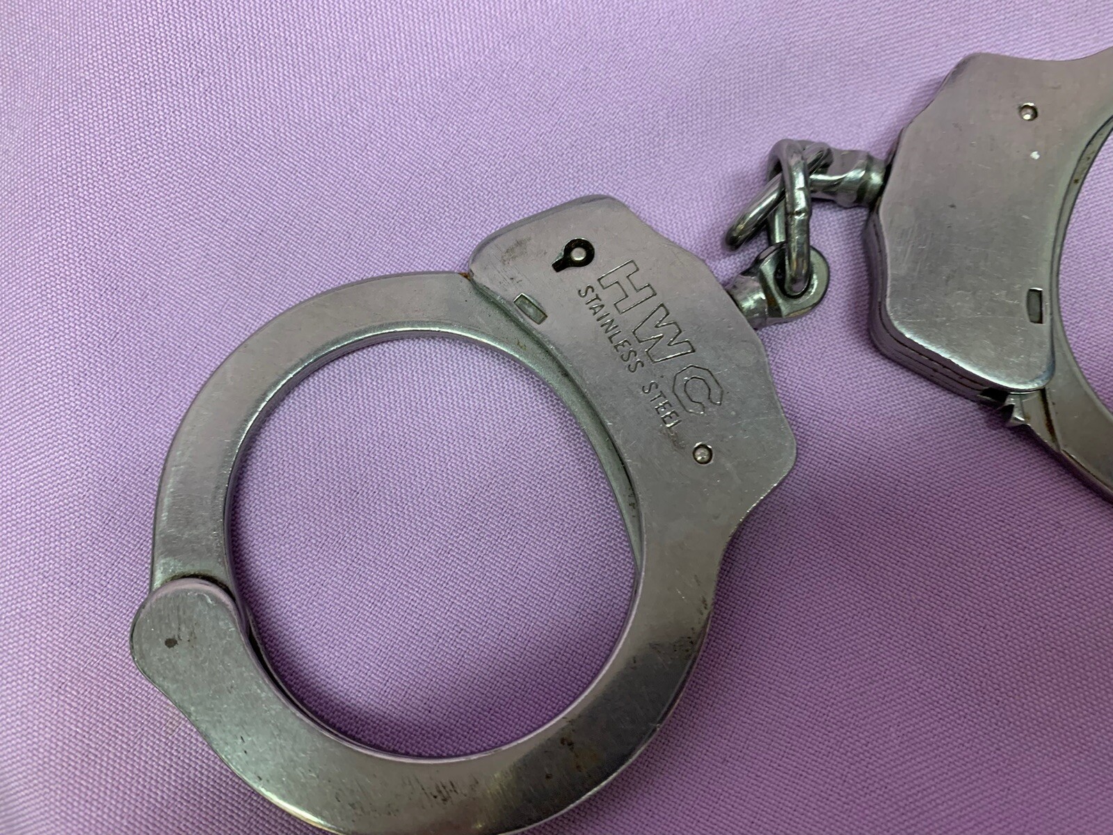 • Vintage HWC Stainless Steel Handcuffs Double Locking Police With Key Rare