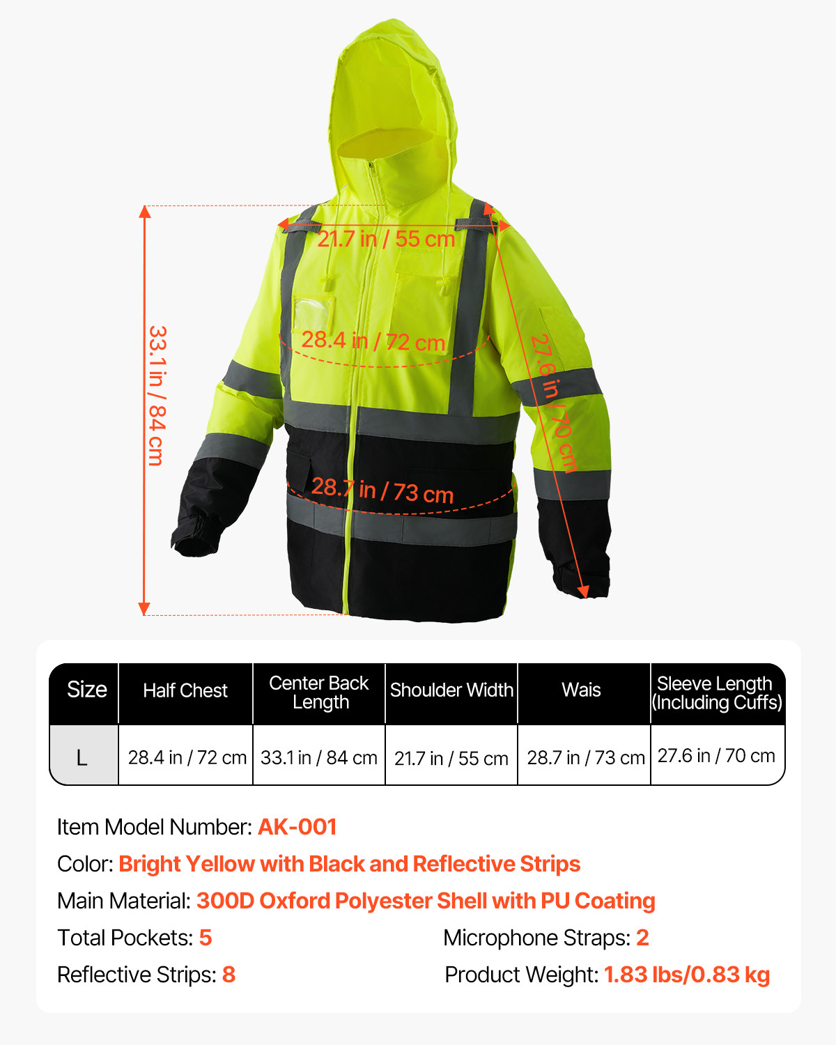 Uimoso High Visibility Reflective Safety Jacket Coat Waterproof L