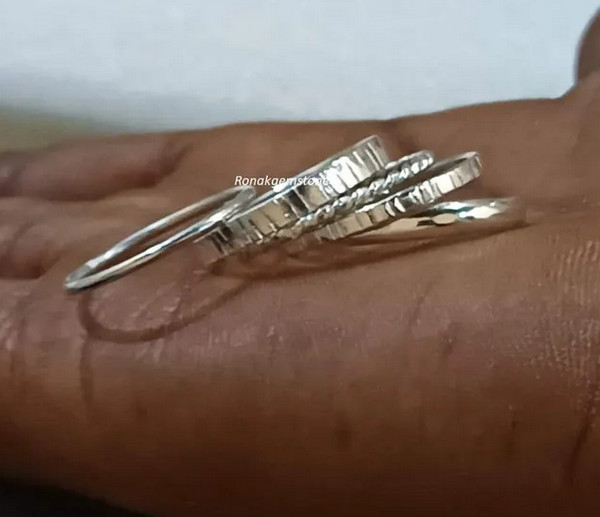 как выглядит Assorted Pattern Rings, Set Of 5 Sterling Silvers, Pure Silver Rings, All Size фото