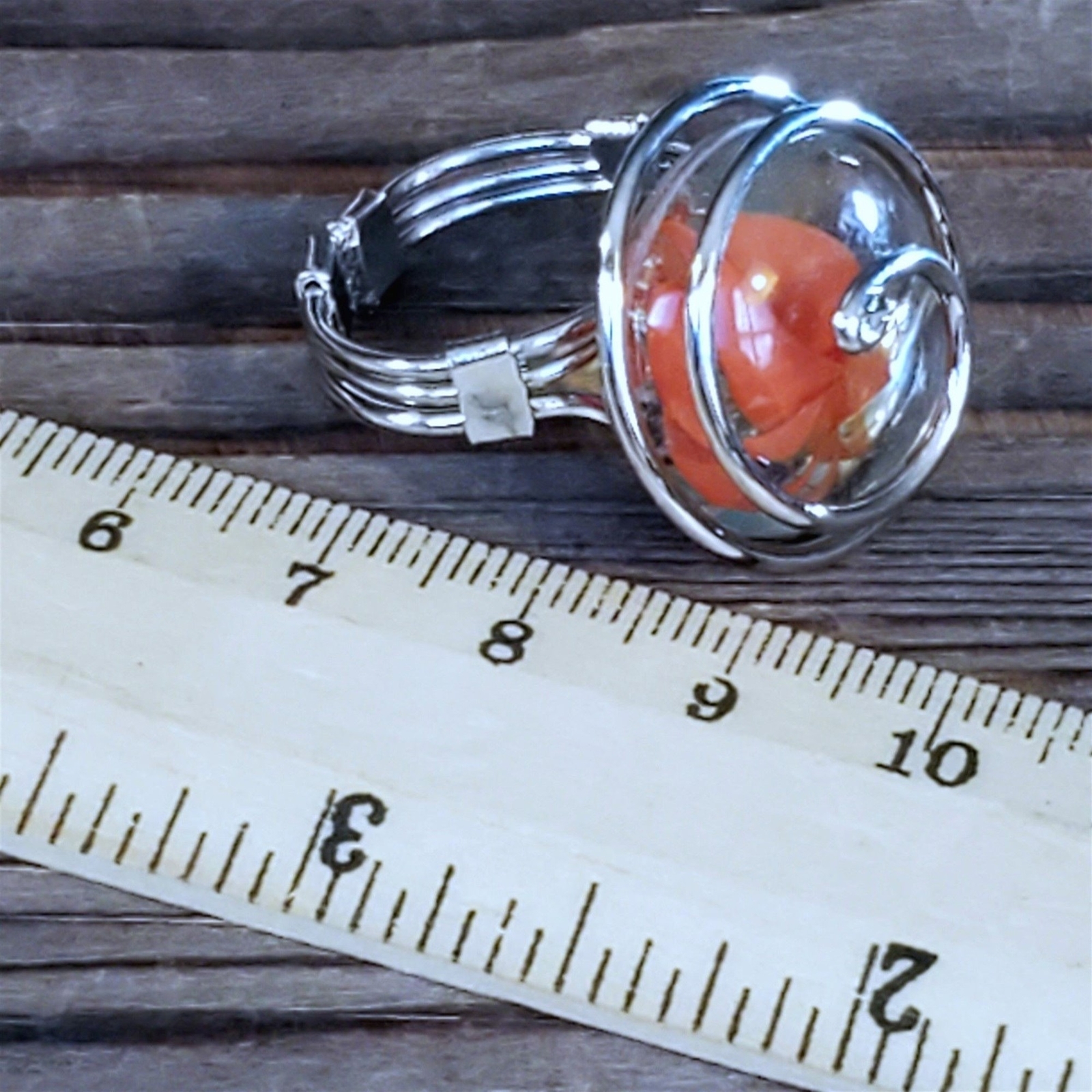как выглядит Handcrafted Edgy Clear Orange Red Spiral Silver Spiral Luster Glass Bauble Ring фото