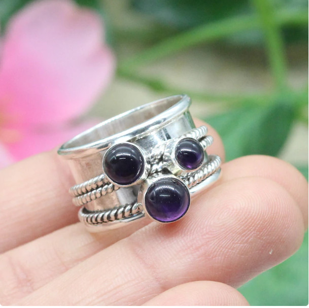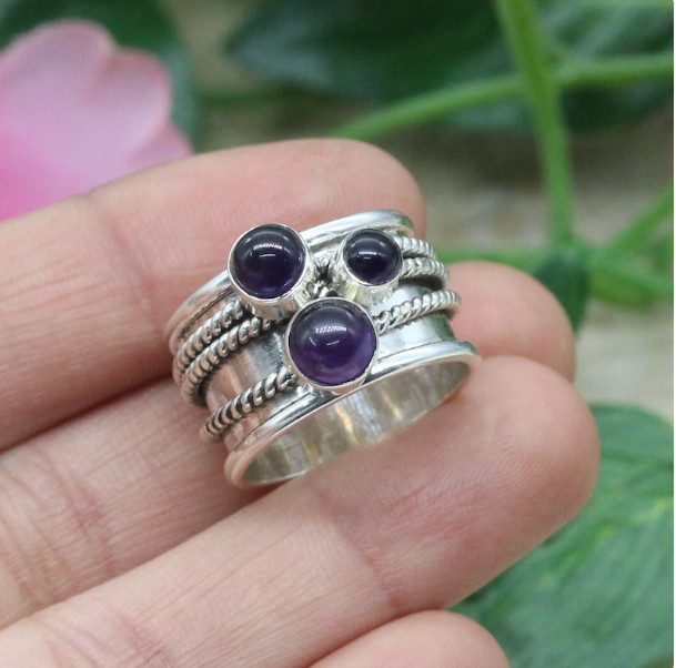 925 Silver Ring / Amethyst / Spinner Meditation Ring / Promise Rings / All Size