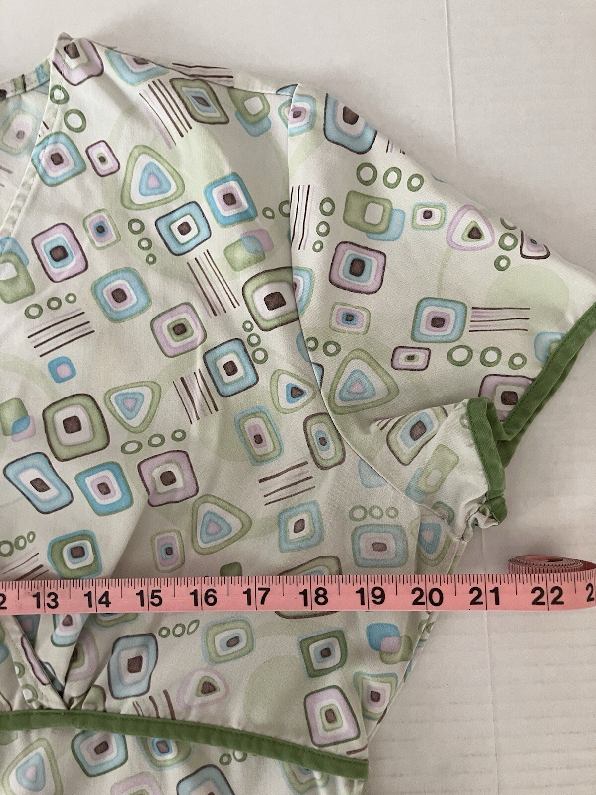 SB Scrubs Top Women's Medium Light Green Blue Pink Geometric V-Neck SS