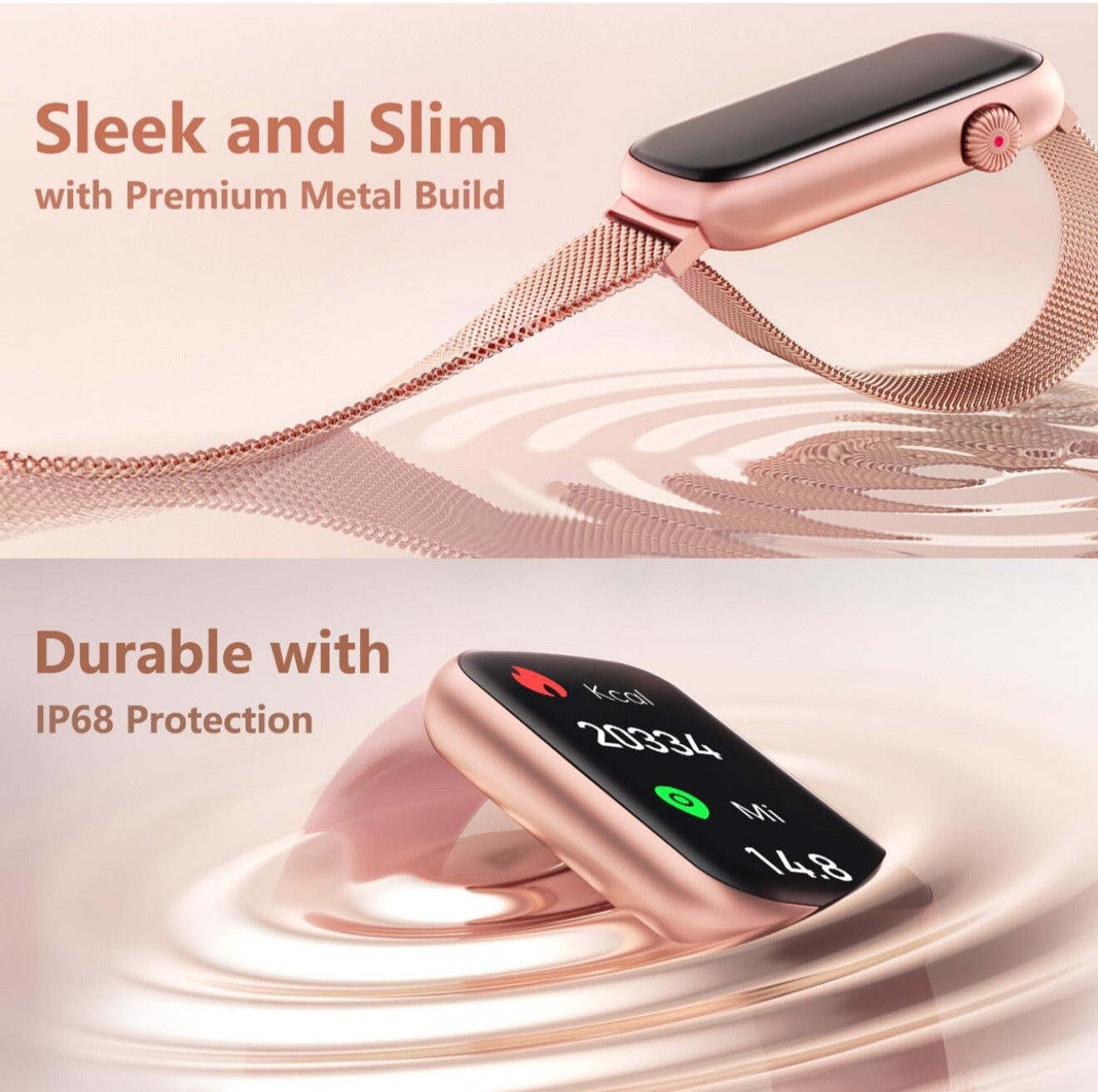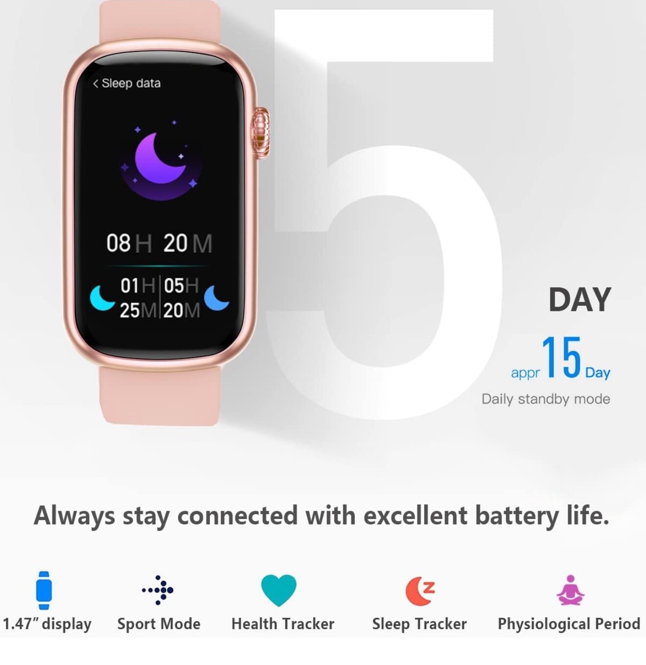 FITVII HM08 Pink Smart Watch 1.47 Screen, IP68, Sport, Heart Rate, Female Cycle
