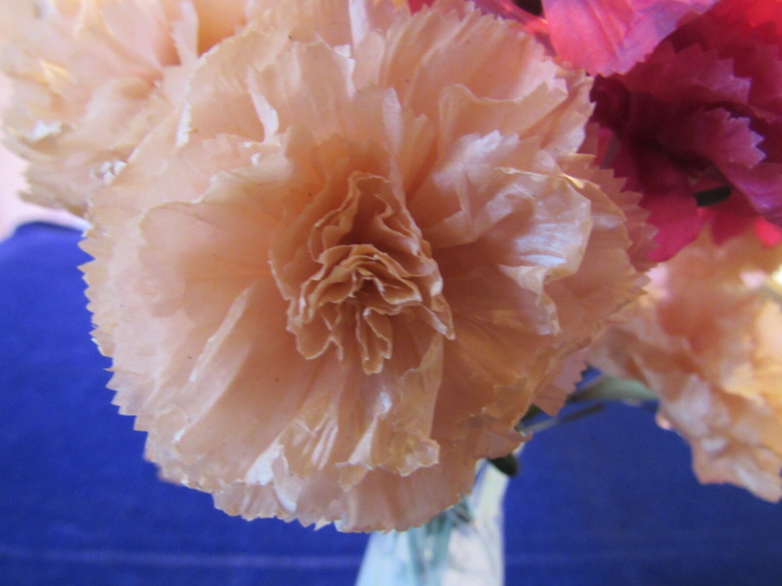 Vtg Millinery Flower Collection Peachy Pink Red Carnation 2 1/2 Blooms H5135