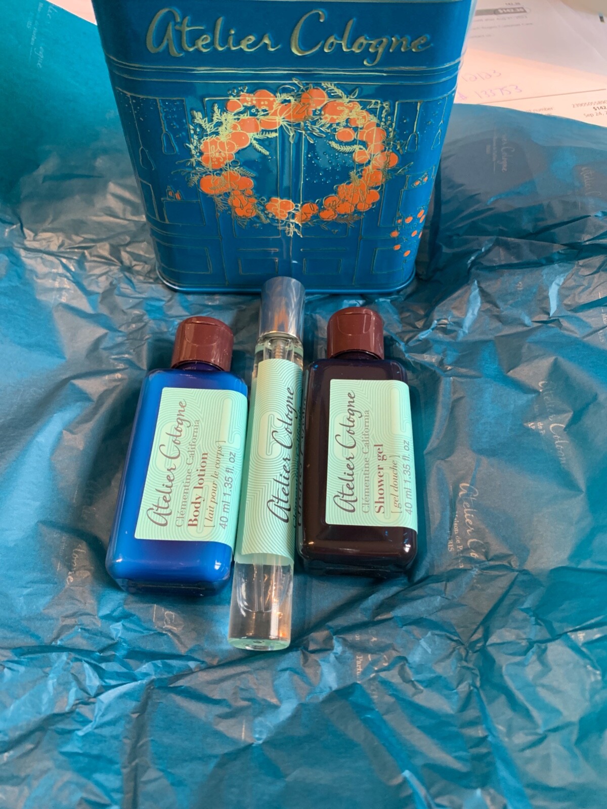 Atelier Orange Scent Clementine 3 pc Gift Set Shower Gel, Lotion, Cologne TRAVEL