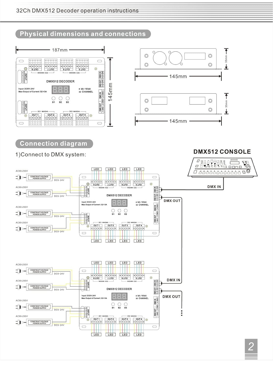 32 Channel 96A RGBW DMX 512 LED Decoder Controller DMX Dimmer DC5-24V RGBW RGB L