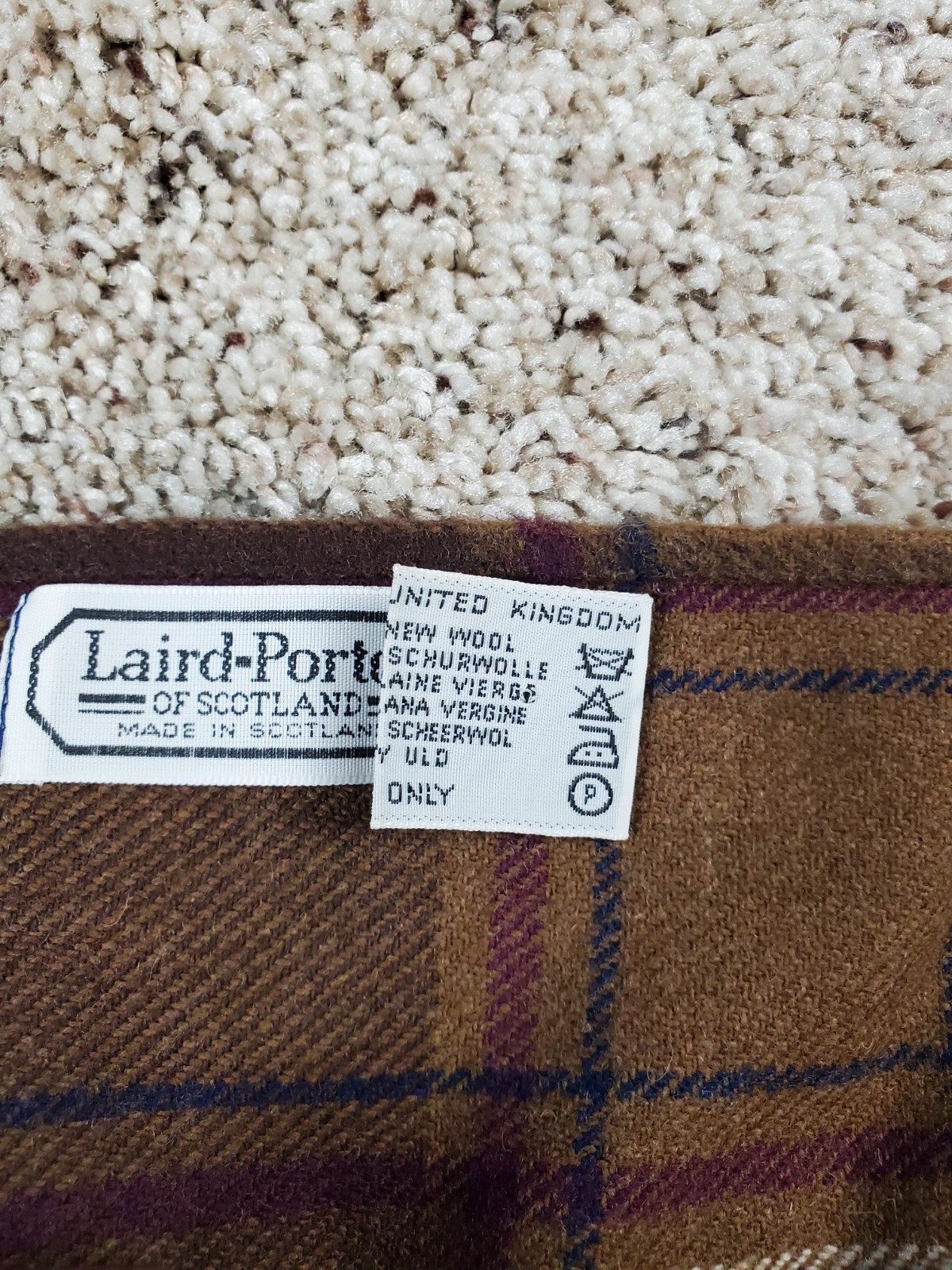 Vintage Laird-Portch Scarf Brown Plaid 100 Wool Unisex Adult Scotland Made