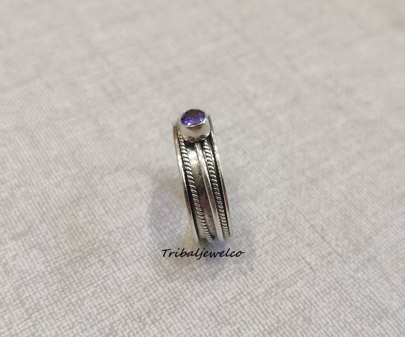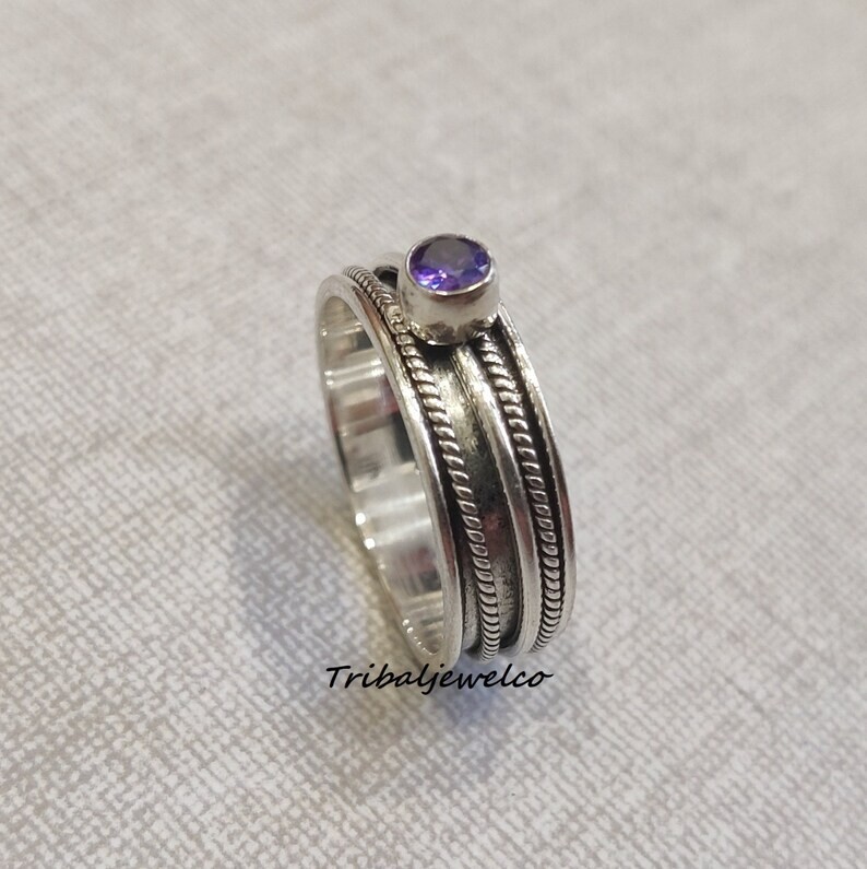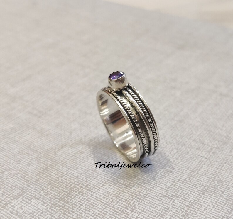 Amethyst Spinner Ring, 925 Sterling Silver, Fidget Spinner Ring, , All size