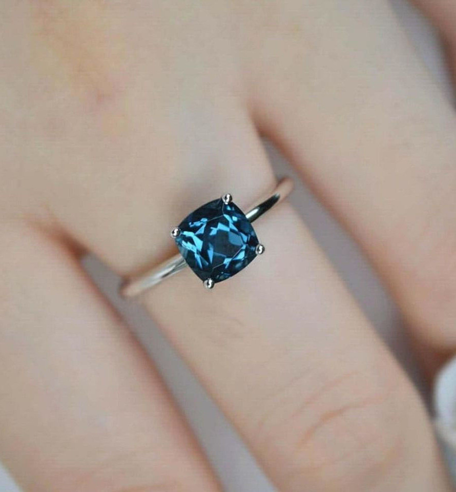 London Blue Topaz Ring Gemstone 925 Sterling Silver Handmade Ring For Gift Her