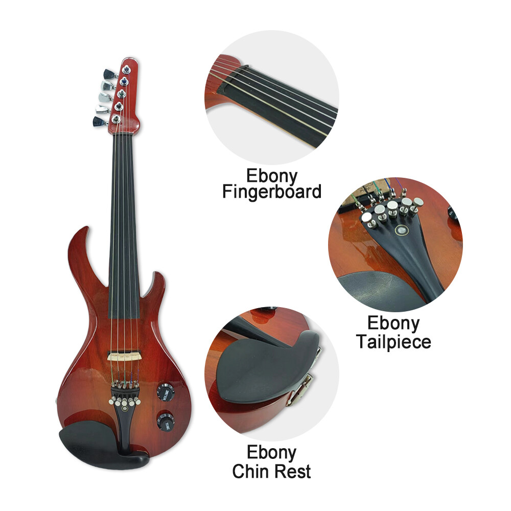 5 Strings Electric Violin Solid Wood Guitar Shape Ebony Fittings Case Bow