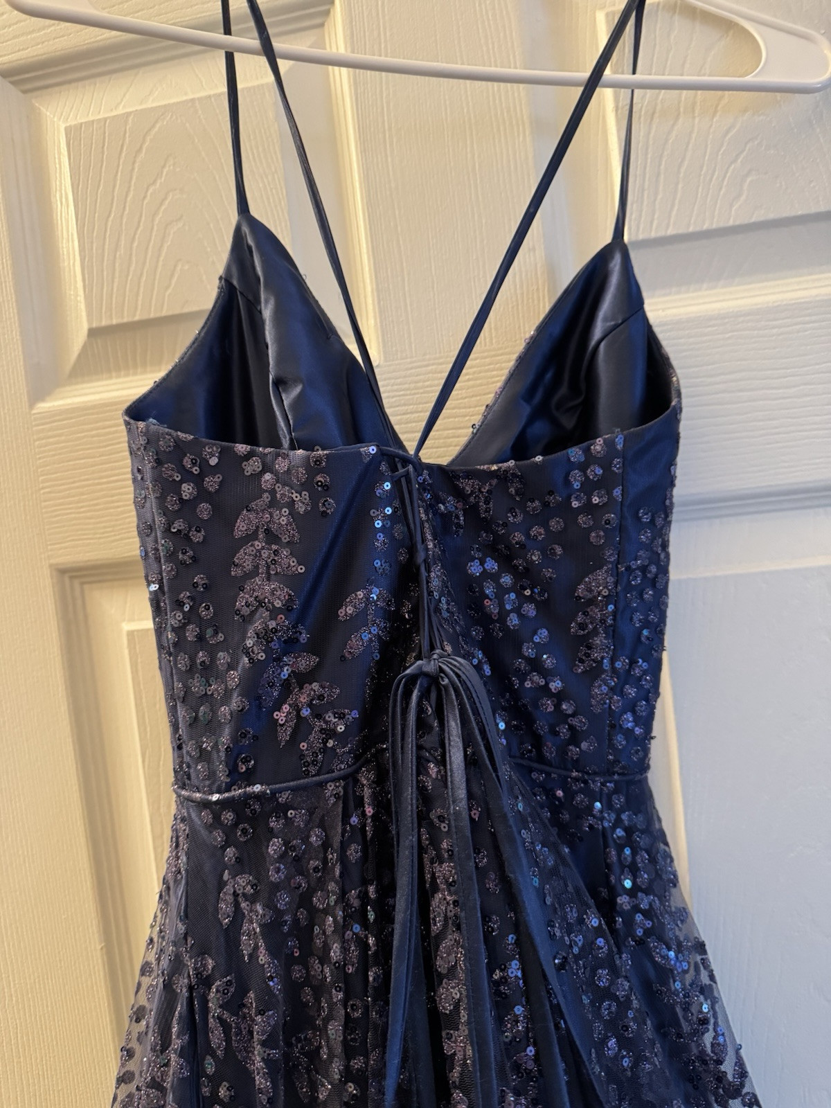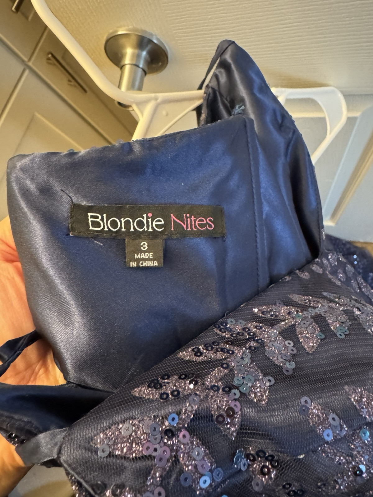 как выглядит Blonde Nites Dark Blue Sequin Prom Dress Size 3 фото