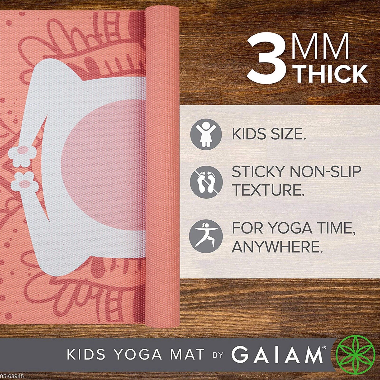 как выглядит Gaiam Kids Yoga Mat 60L x 24W x 3MM animal print фото
