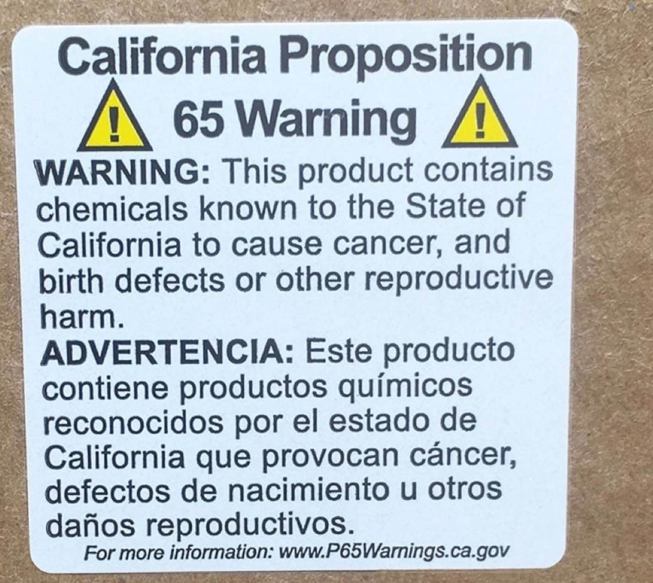 California Prop 65 Warning: This product contains chemicals known to the State of California to cause cancer, and birth defects or other reproductive harm.