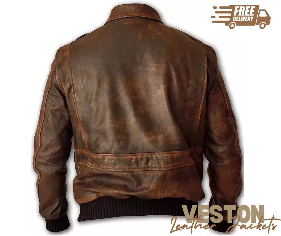 Men Lambskin Distressed Real Leather Jacket A2 Flight Aviator Bomber Pilot Style