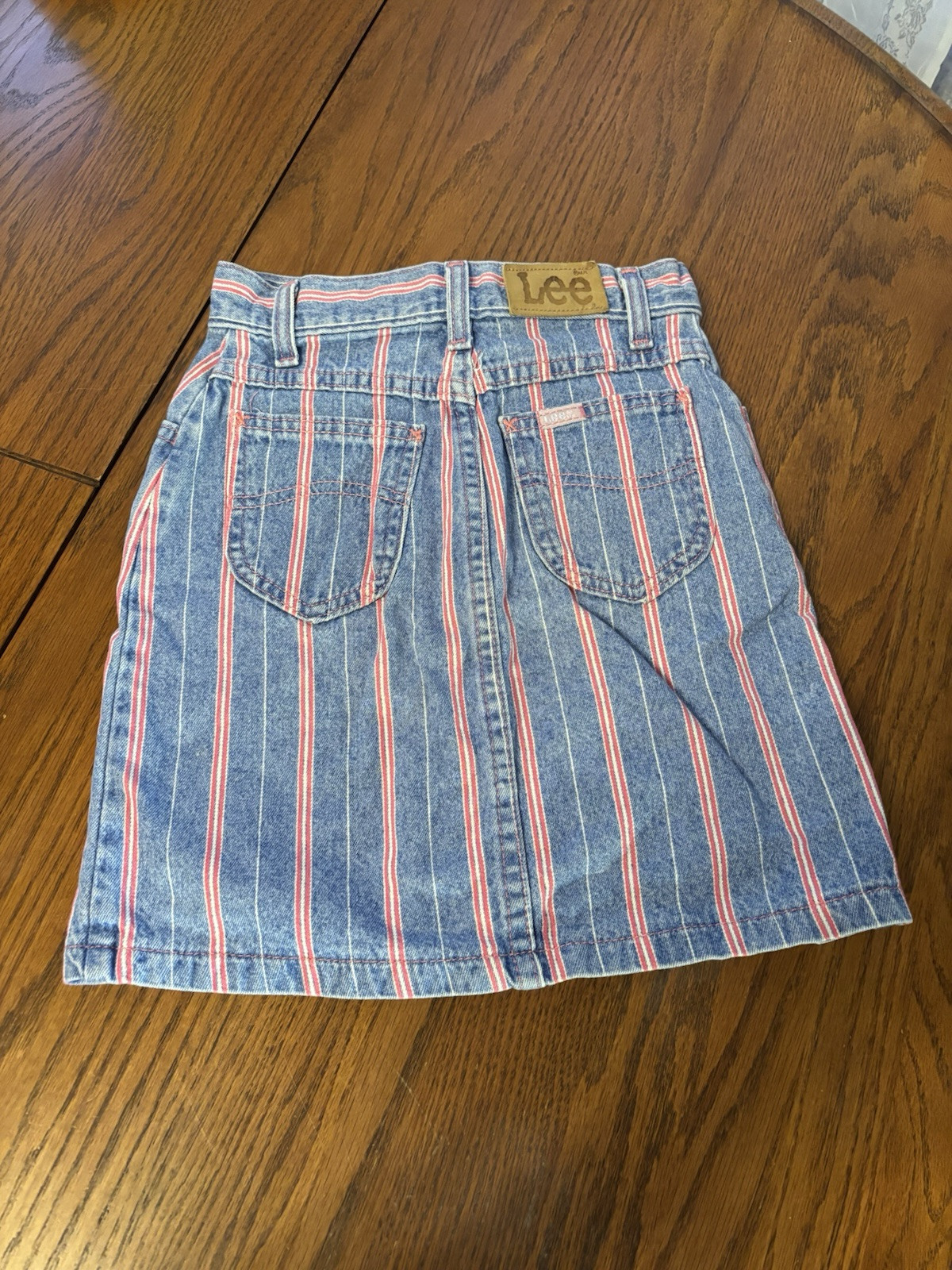 как выглядит vtg LEE USA girls 8 reg denim jean striped skirt фото