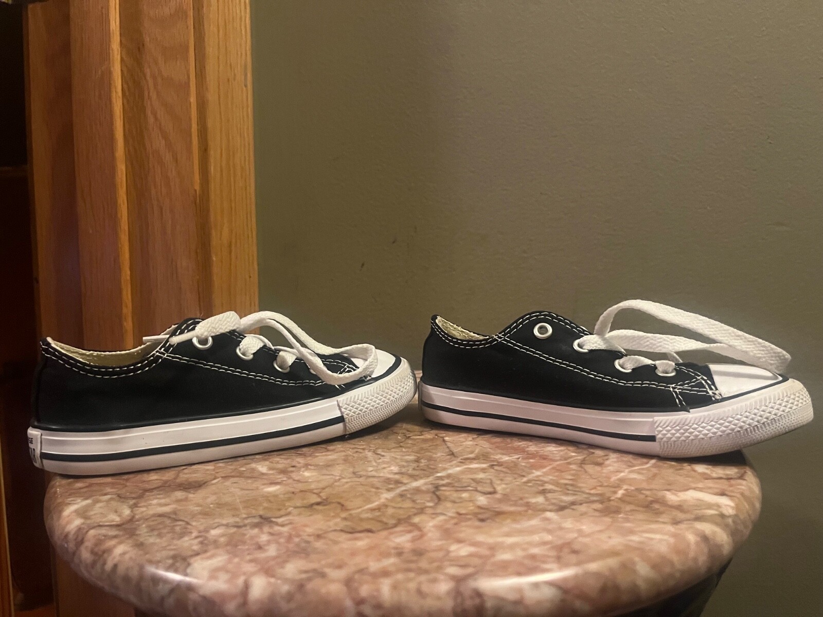 как выглядит Size 9 Converse Chuck Taylor All Star Kids Infant Black Low Top Shoes 7J235 фото