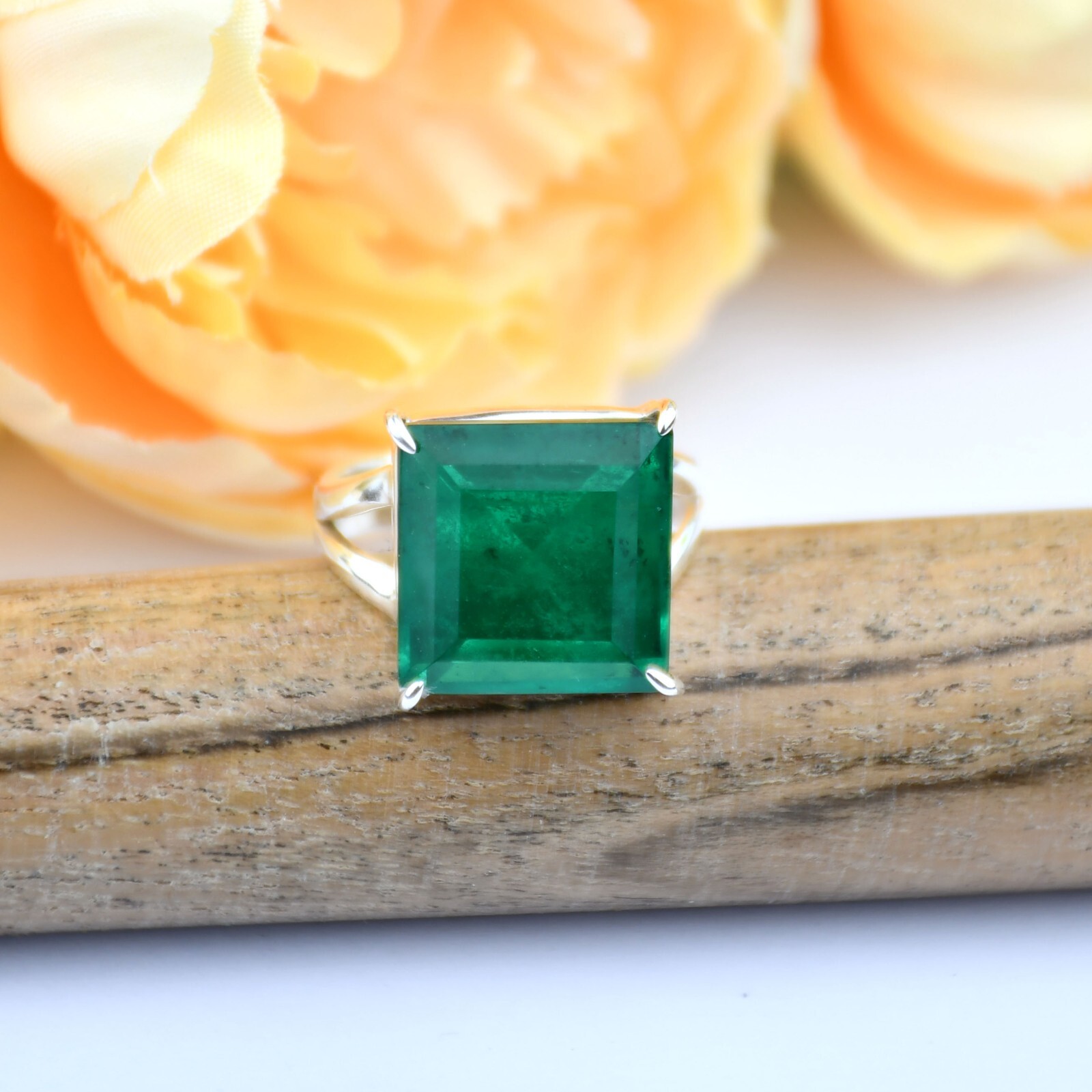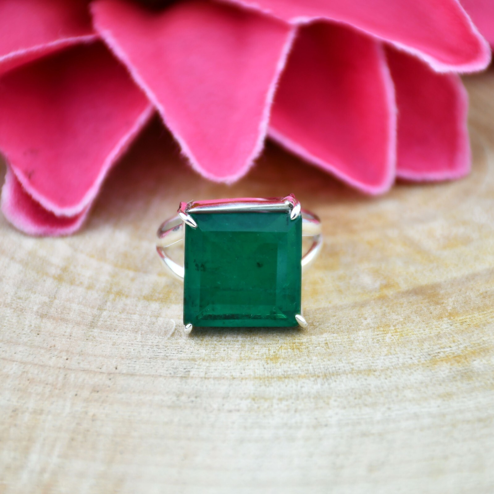 Genuine Emerald 925 Sterling Silver Square Shape Emerald Gemstone All Size Ring