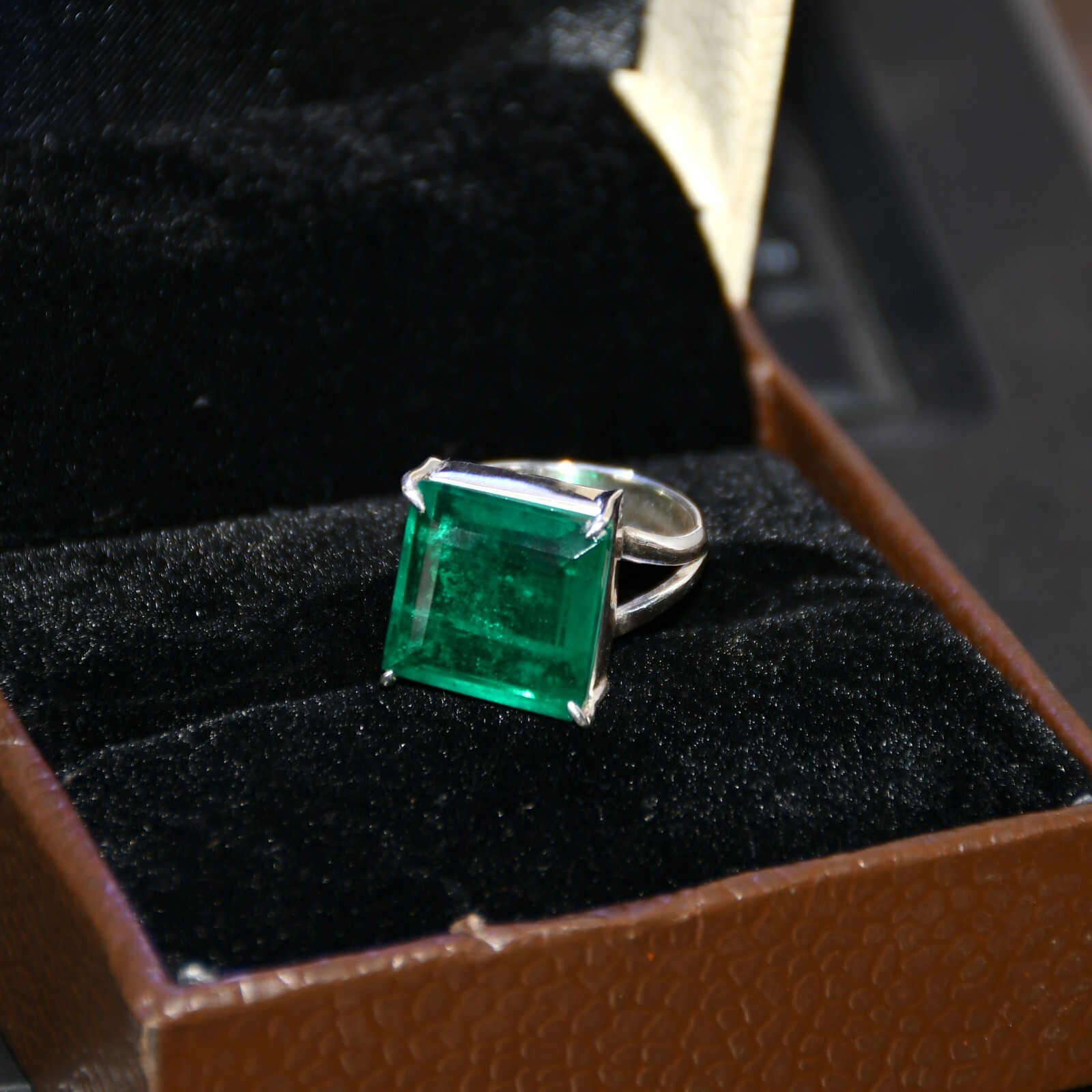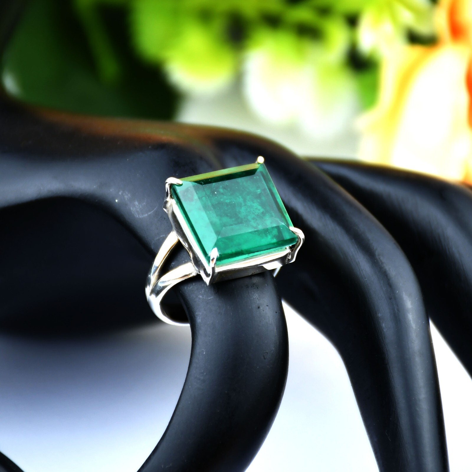 как выглядит Genuine Emerald 925 Sterling Silver Square Shape Emerald Gemstone All Size Ring фото