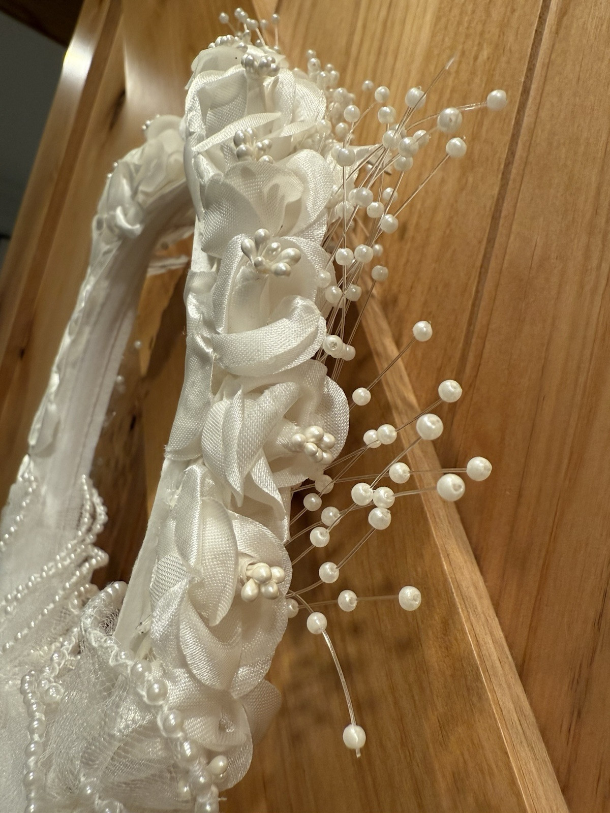 как выглядит Vintage Girl s 90s Communion Pearls Lace Ivory Dress, Flower Veil, Gloves Size 8 фото