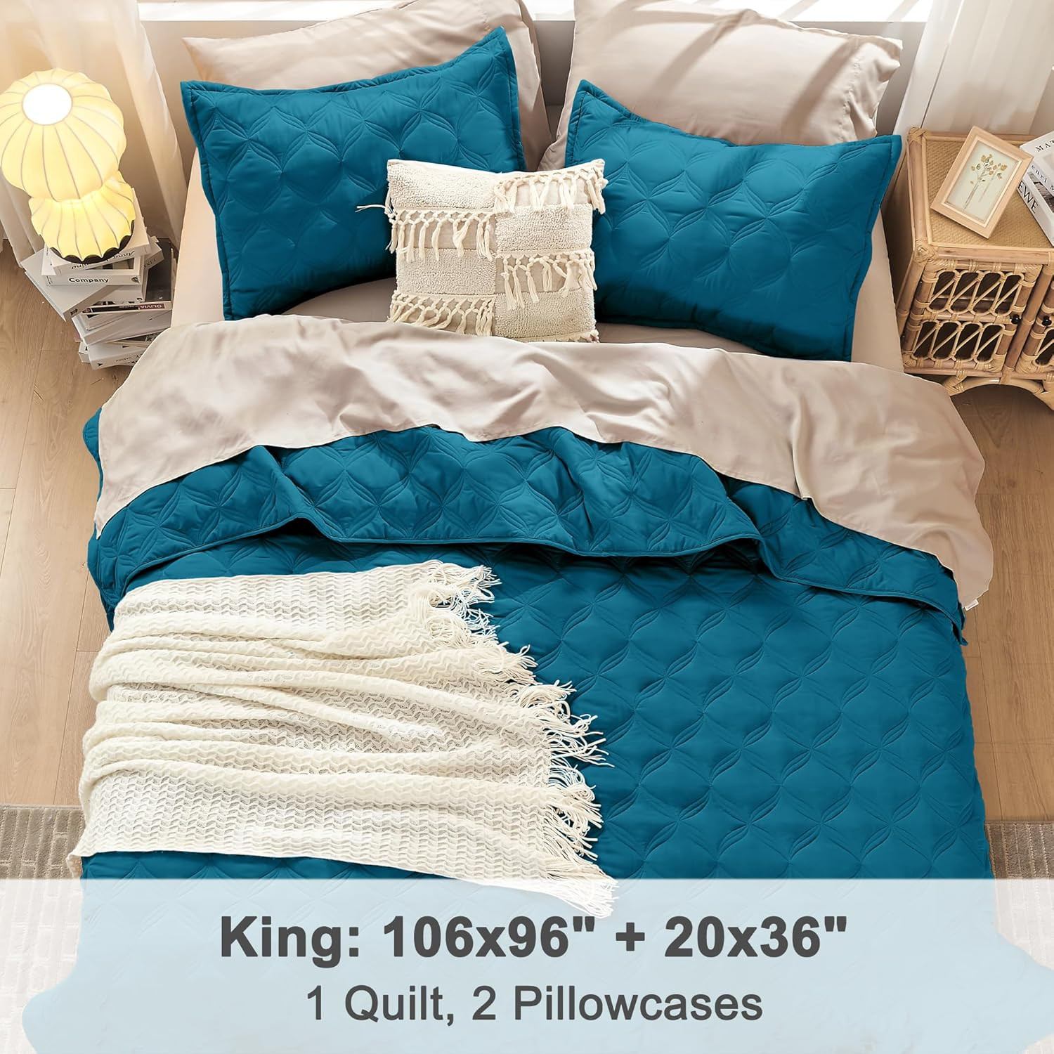King Size Quilt Bedding Set - Teal Lightweight Comforter Bedspreads Coverlets