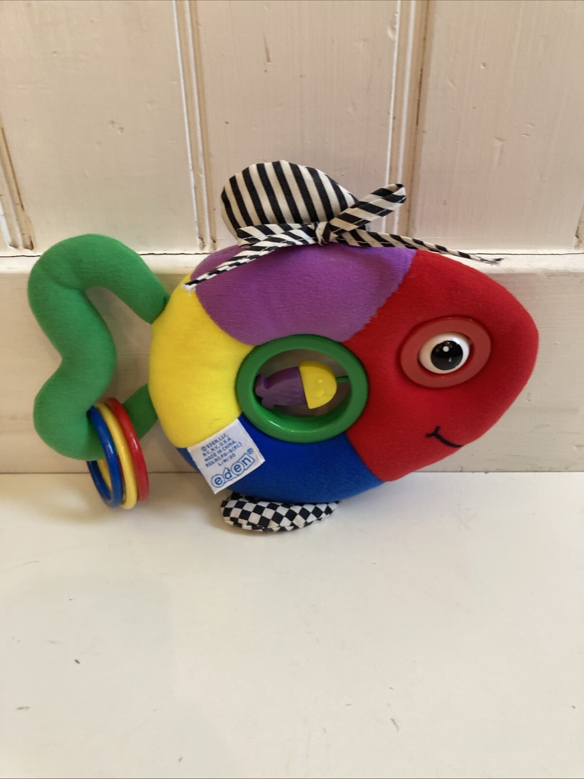 как выглядит Vintage Eden Fish Toy Plush 10" Bright Color Crinkle Baby Toy Teether фото