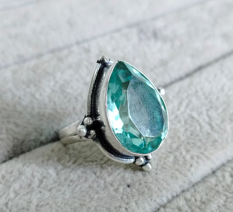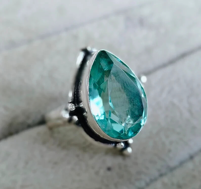как выглядит Natural Aquamarine 925 Sterling Silver Band Statement Ring Handmade All Size фото
