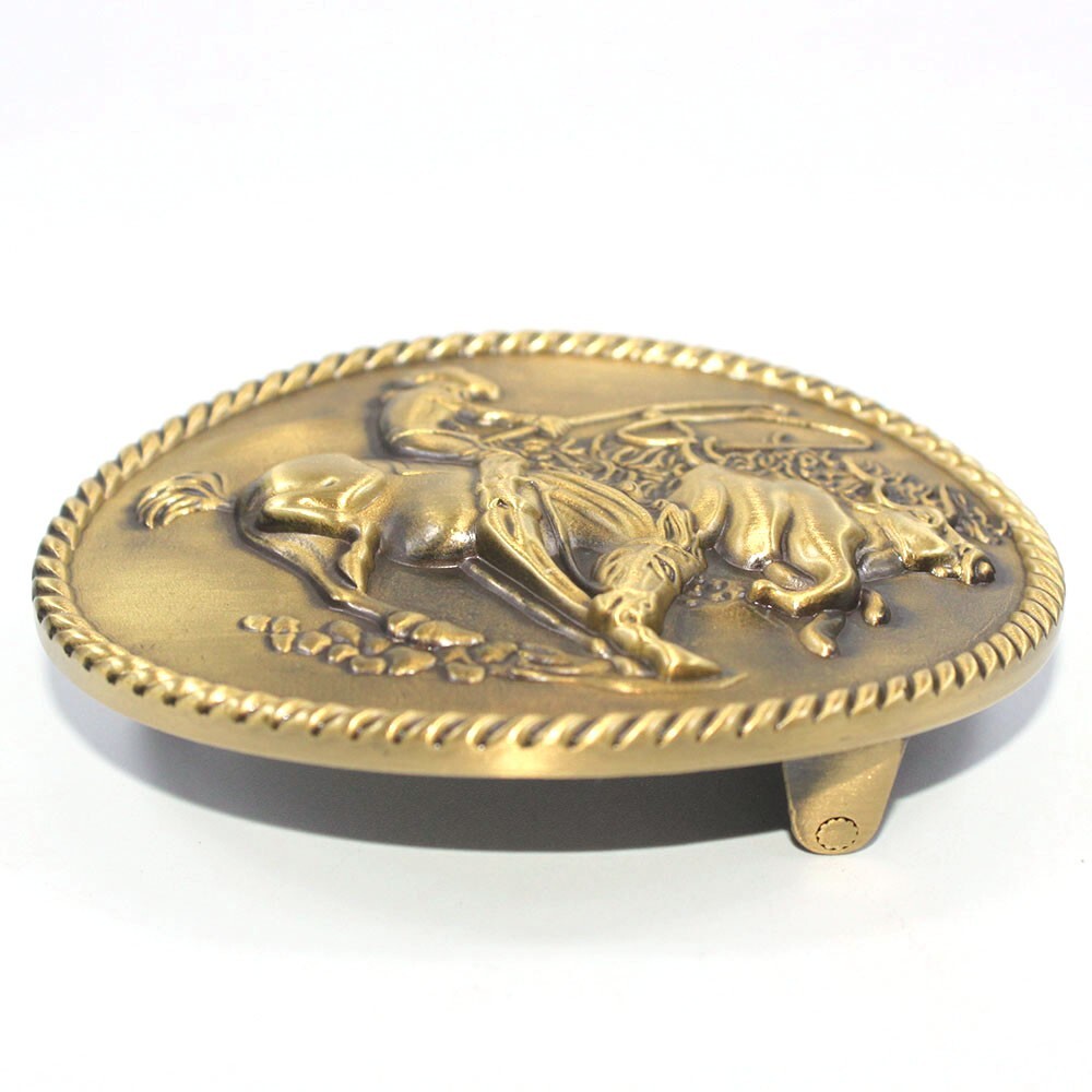 как выглядит Solid Brass Cowboy Belt Buckle Pin Belt Buckles Fits For 1.5 INCHES Belt Gift фото