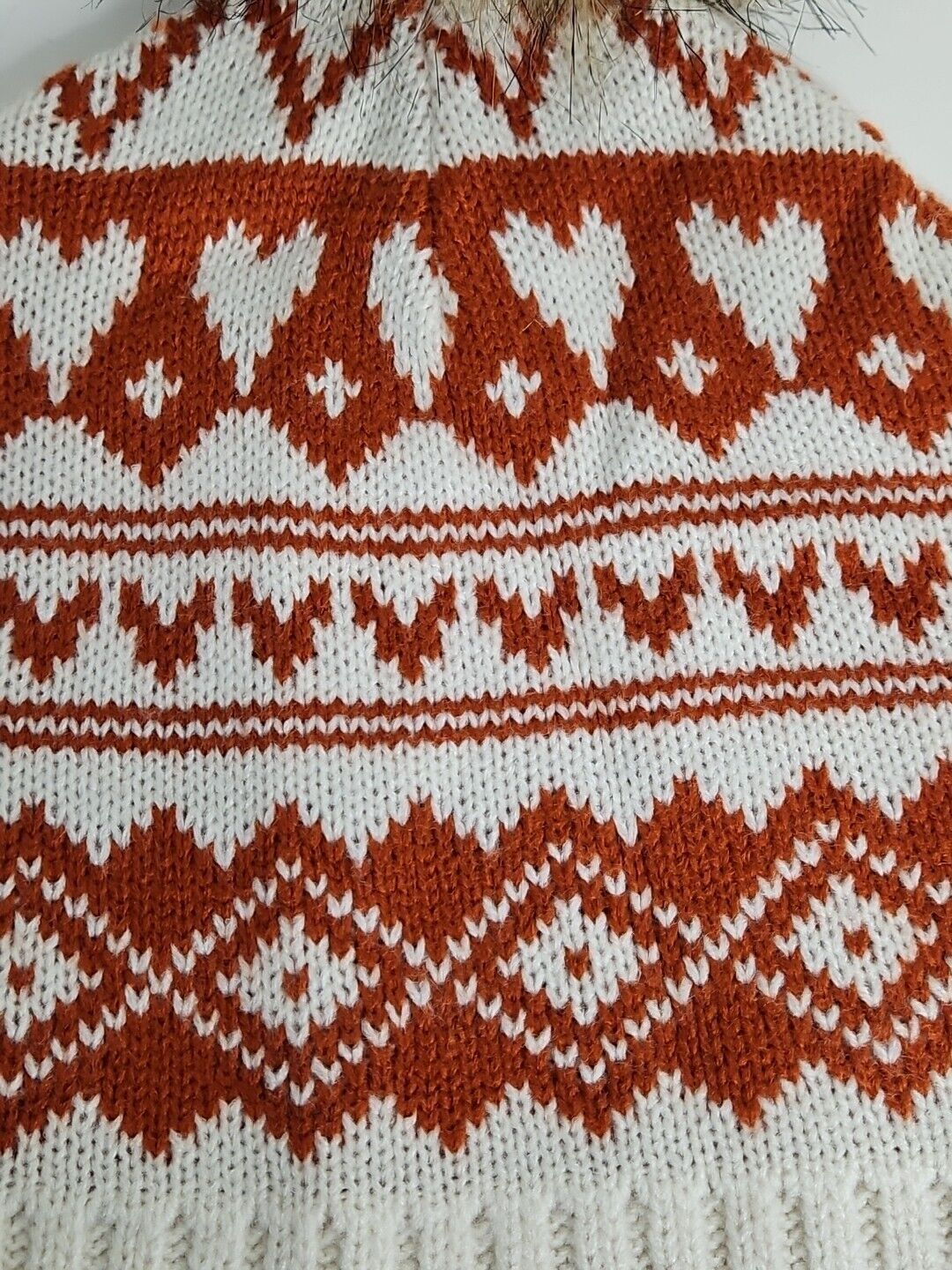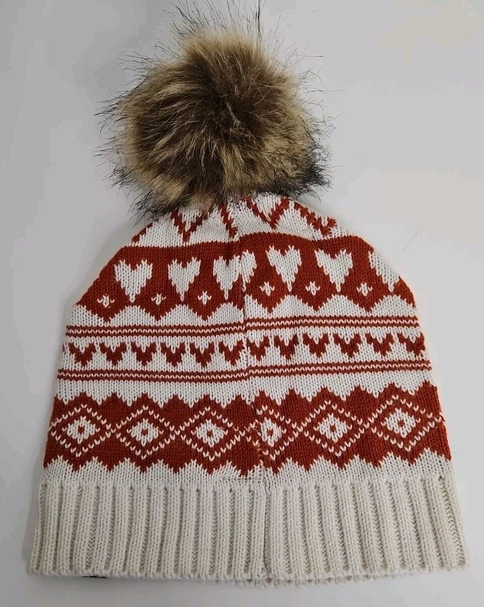 Frye and Co Fair Isle Beanie with Faux Fur Pom Pom Orange
