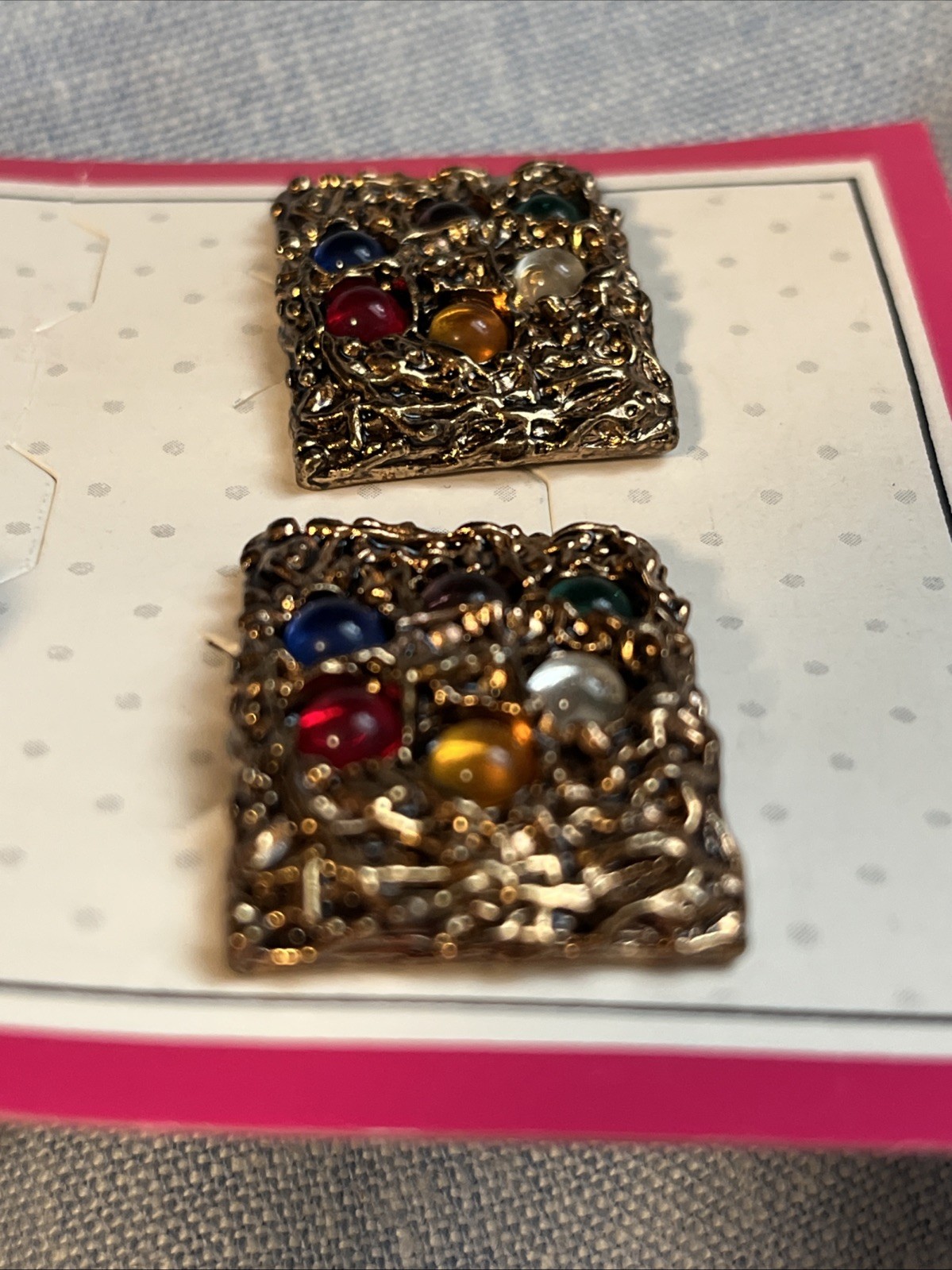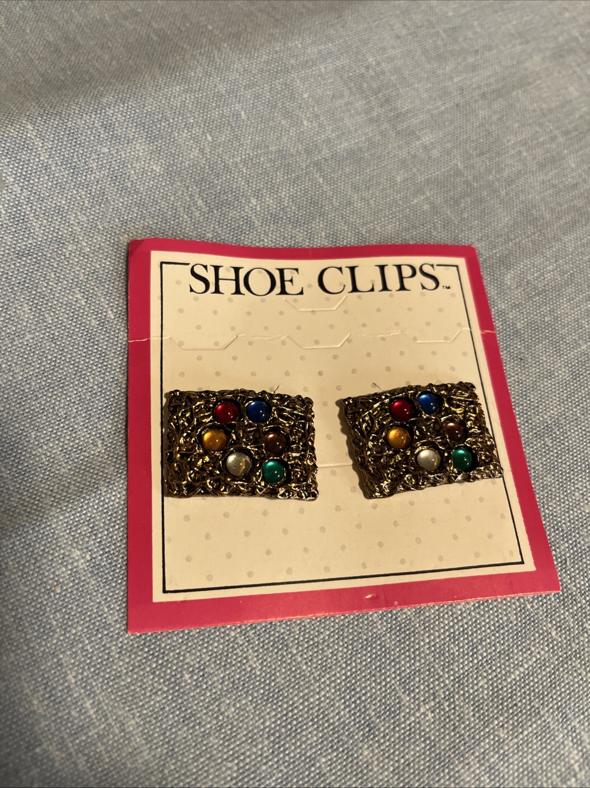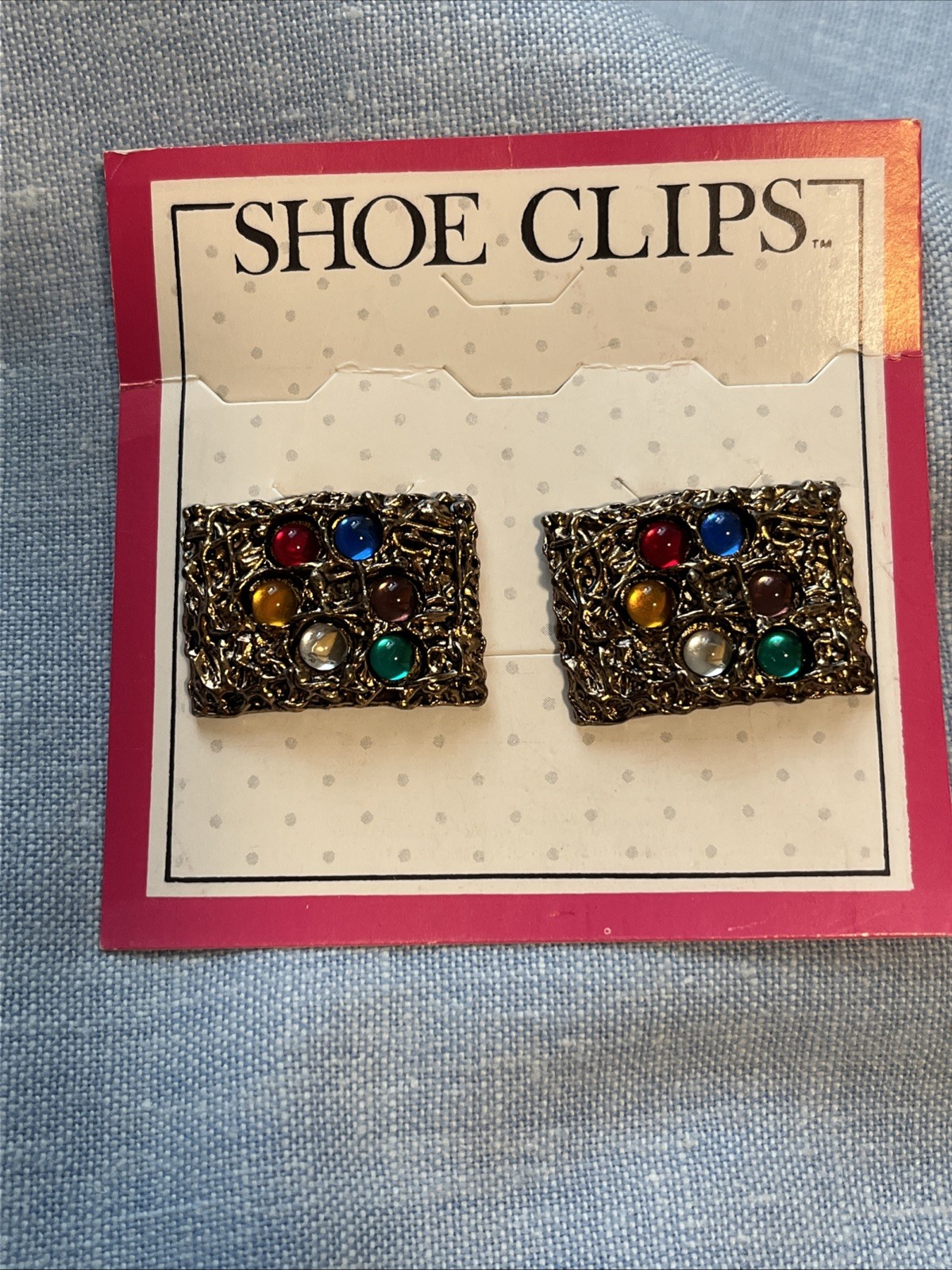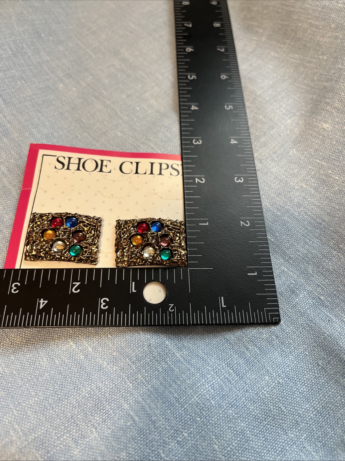 Vintage Shoe Clips Gold Tone with Multi-Color Accent Stones Made in USA 80s