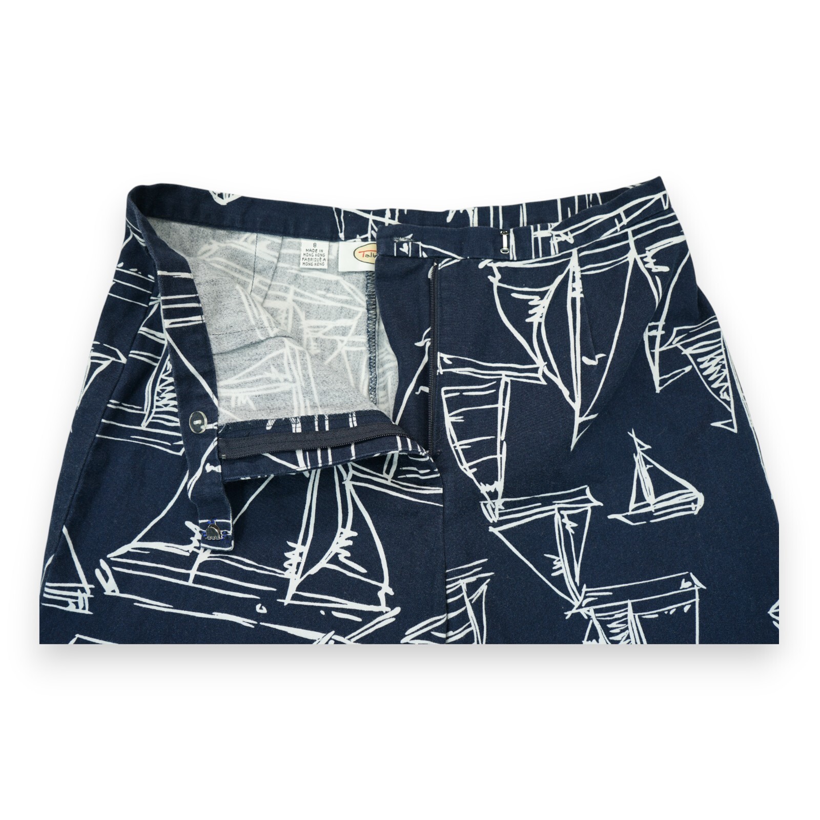Vintage Talbots Preppy Navy Sailboat Print Cotton Straight Leg Pants Size 8