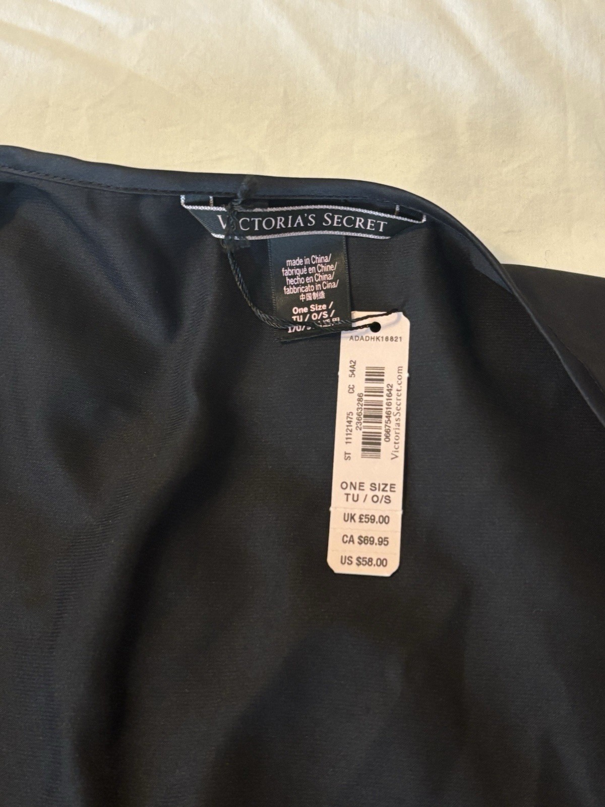 NWT Victoria s Secret Women s Black Satin Tie Kimono Style Robe, One Size, 58
