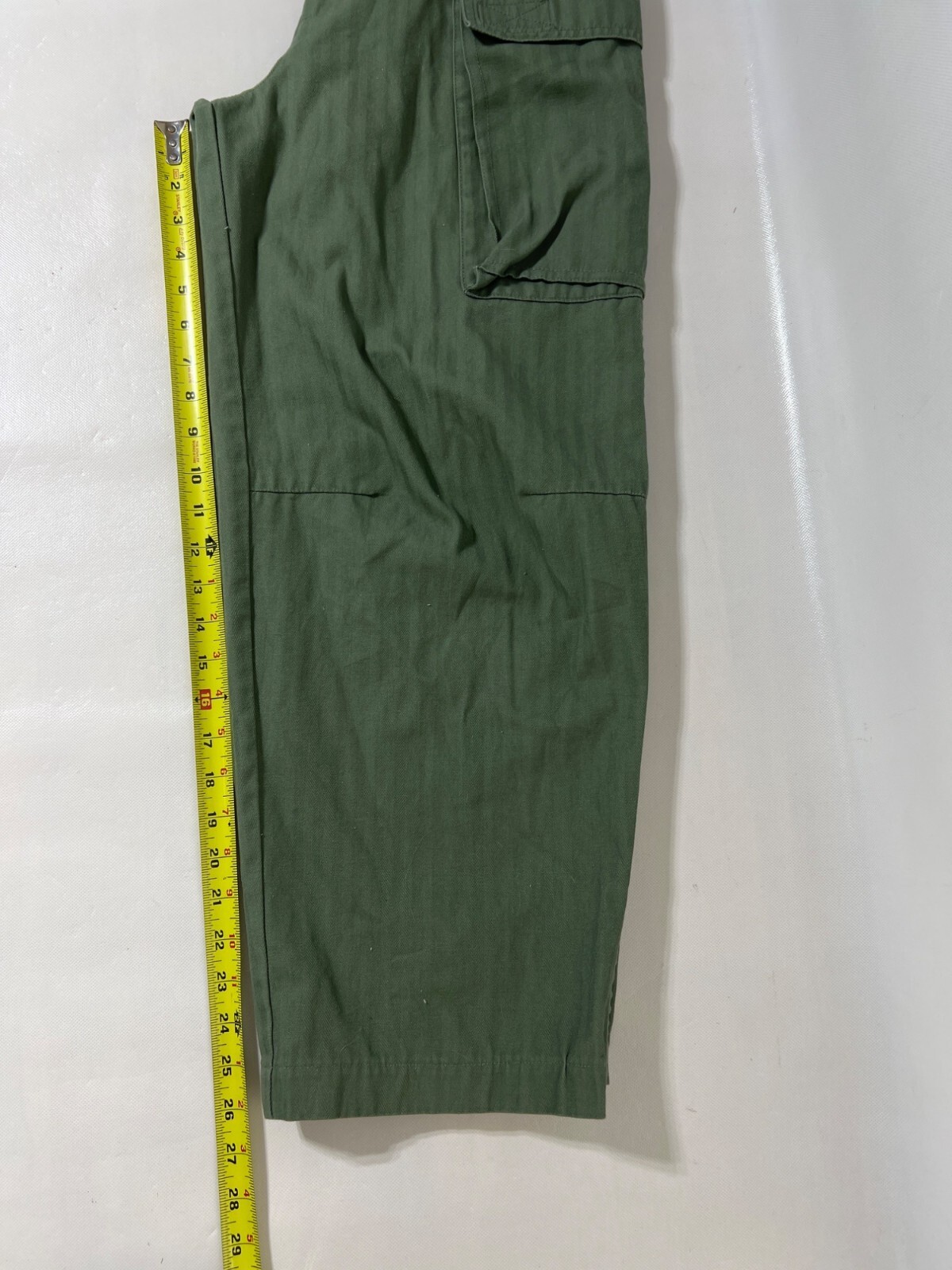 как выглядит Olive Green Wide-Leg Utility Cargo Pants With Large Pockets Button Waist фото