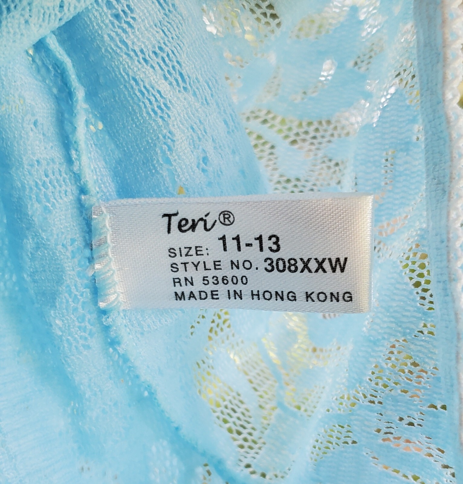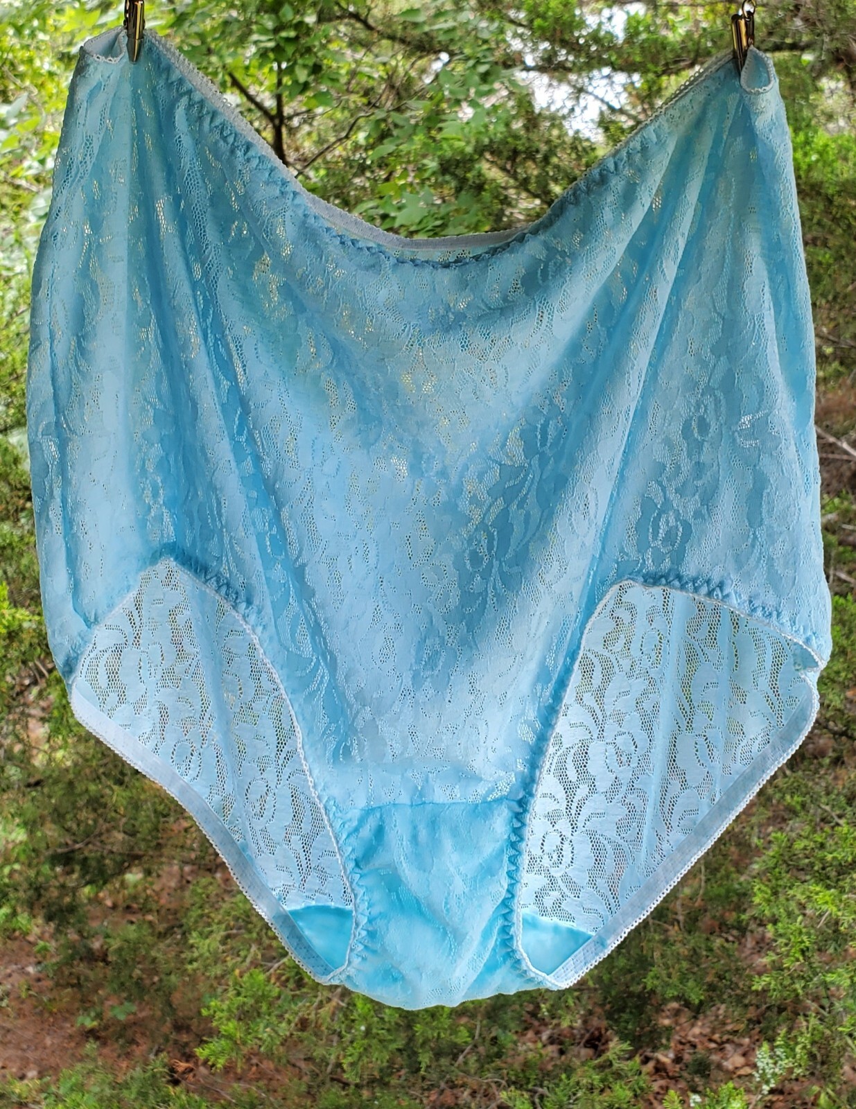 Teri Lingerie Floral Lace Nylon Brief Panty Full Cut 9/2XL CLEAR BLUE 308