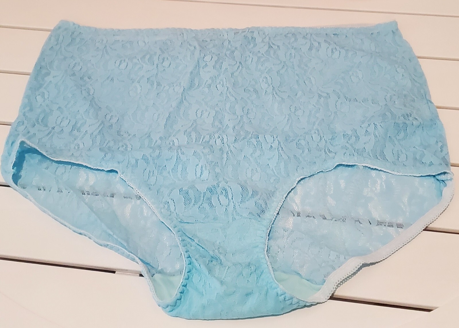 как выглядит Teri Lingerie Floral Lace Nylon Brief Panty Full Cut 9/2XL CLEAR BLUE 308 фото
