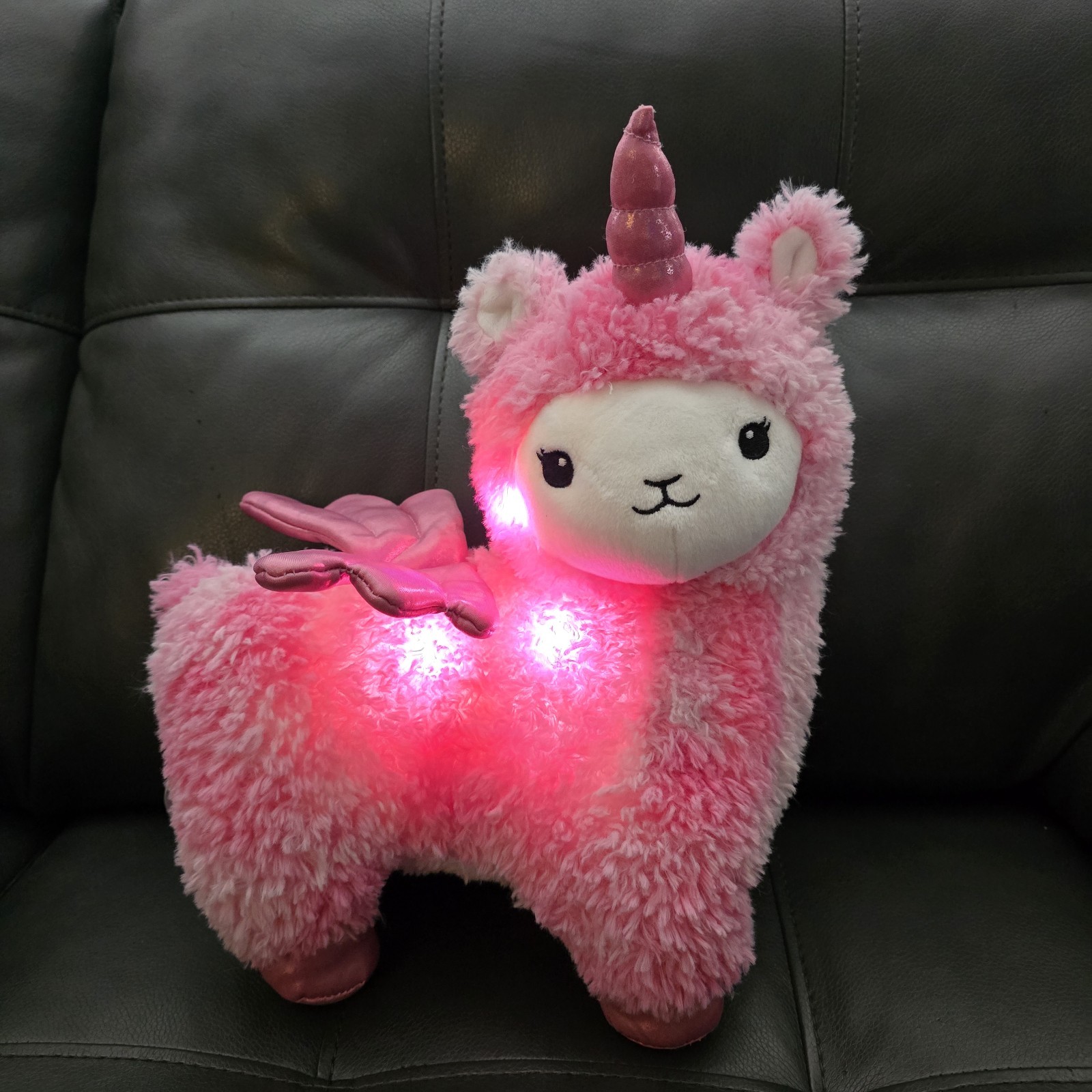 FAO Schwarz Glow Brights Pink Llama Plush Stuffed Animal Toy Lights Up Sounds