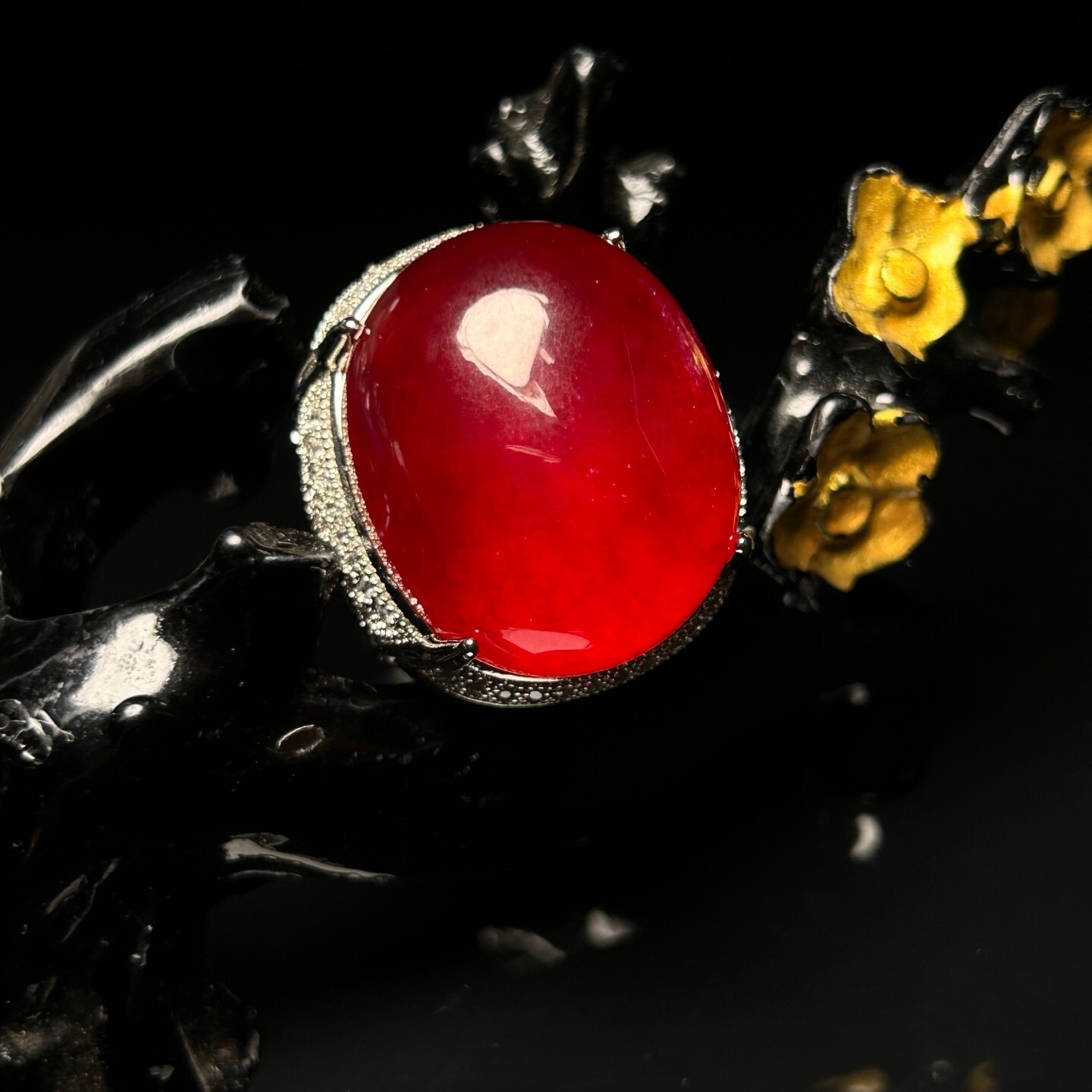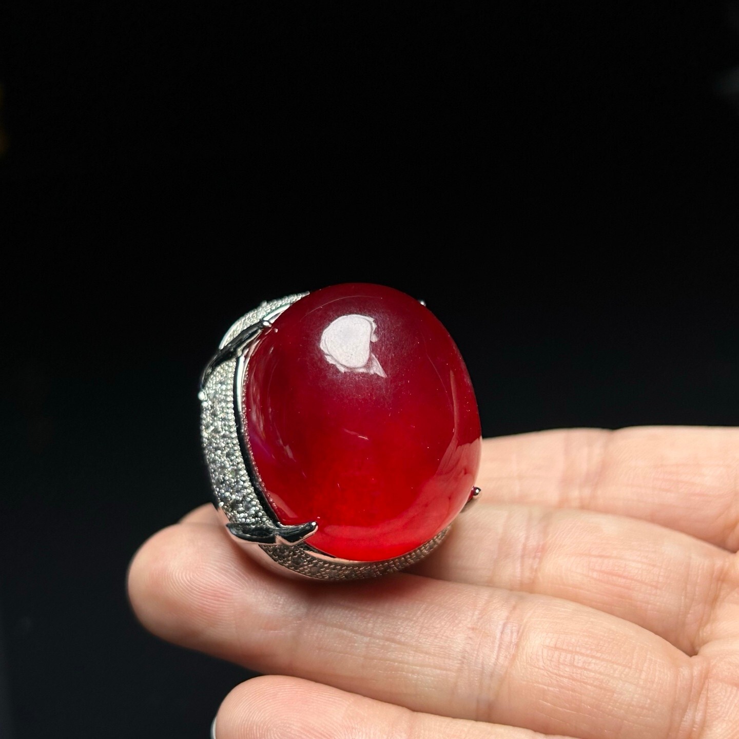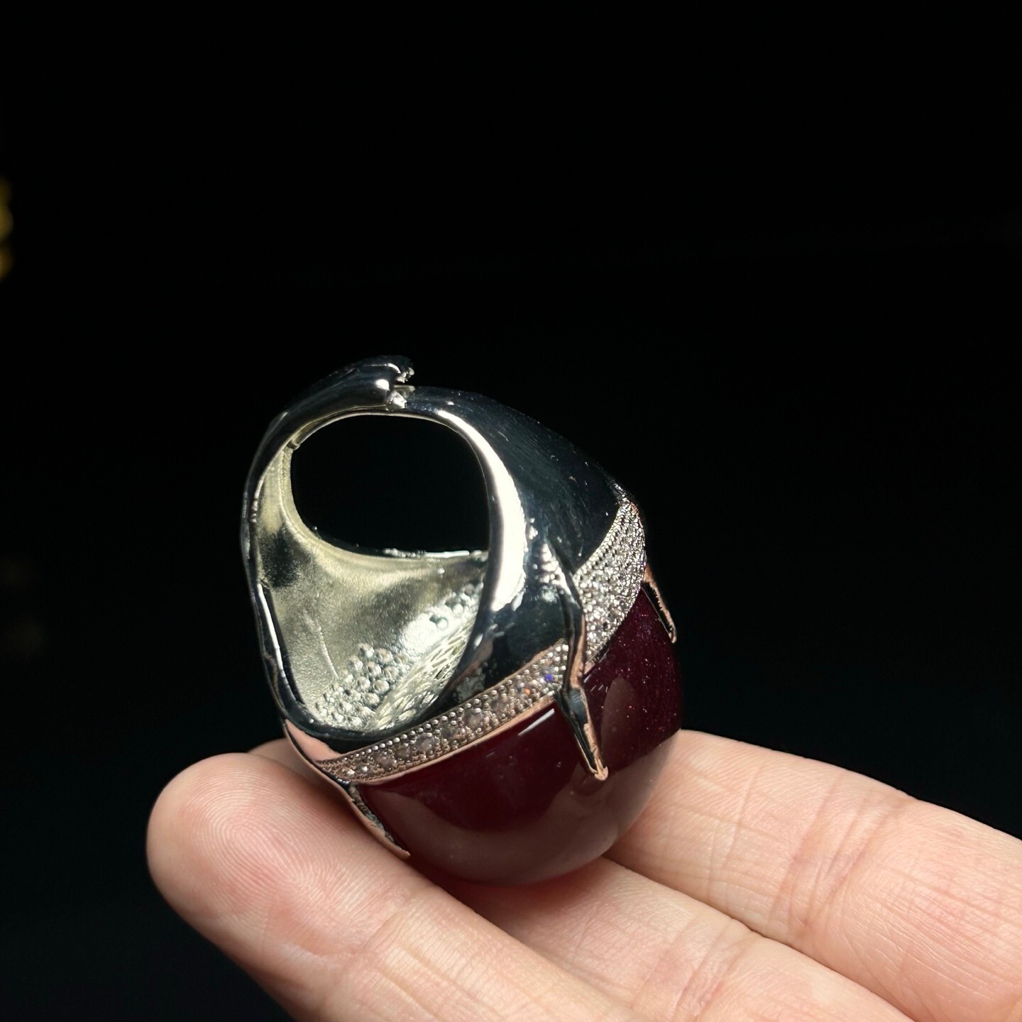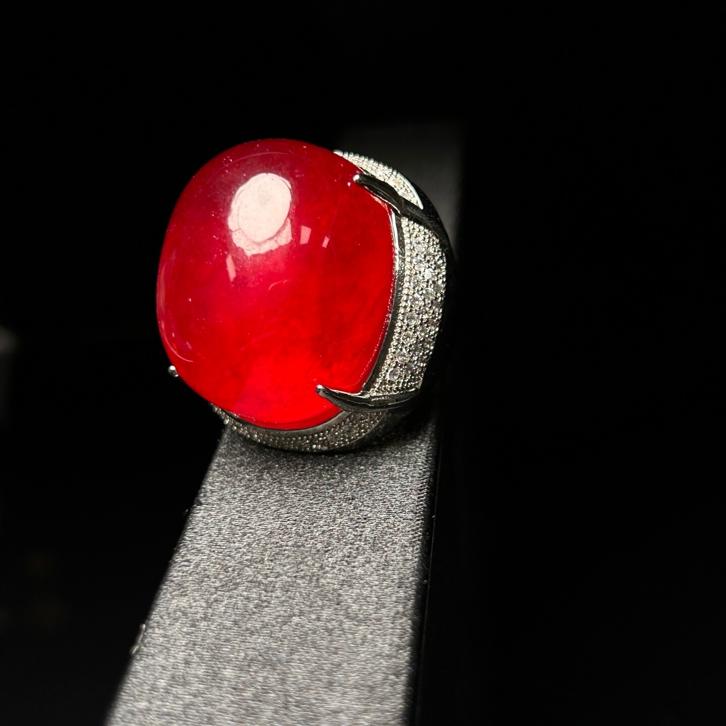 как выглядит Certified Natural inlay ice red Burmese Jade Jadeite egg adjustable Amulet Rings фото