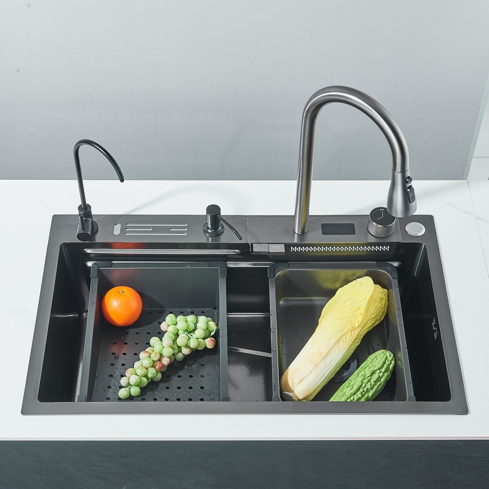 Items Included: ‎soap dispenser, Water Filter Tap, Waterfall Kitchen Sink, Pull-out Faucet, cutting board