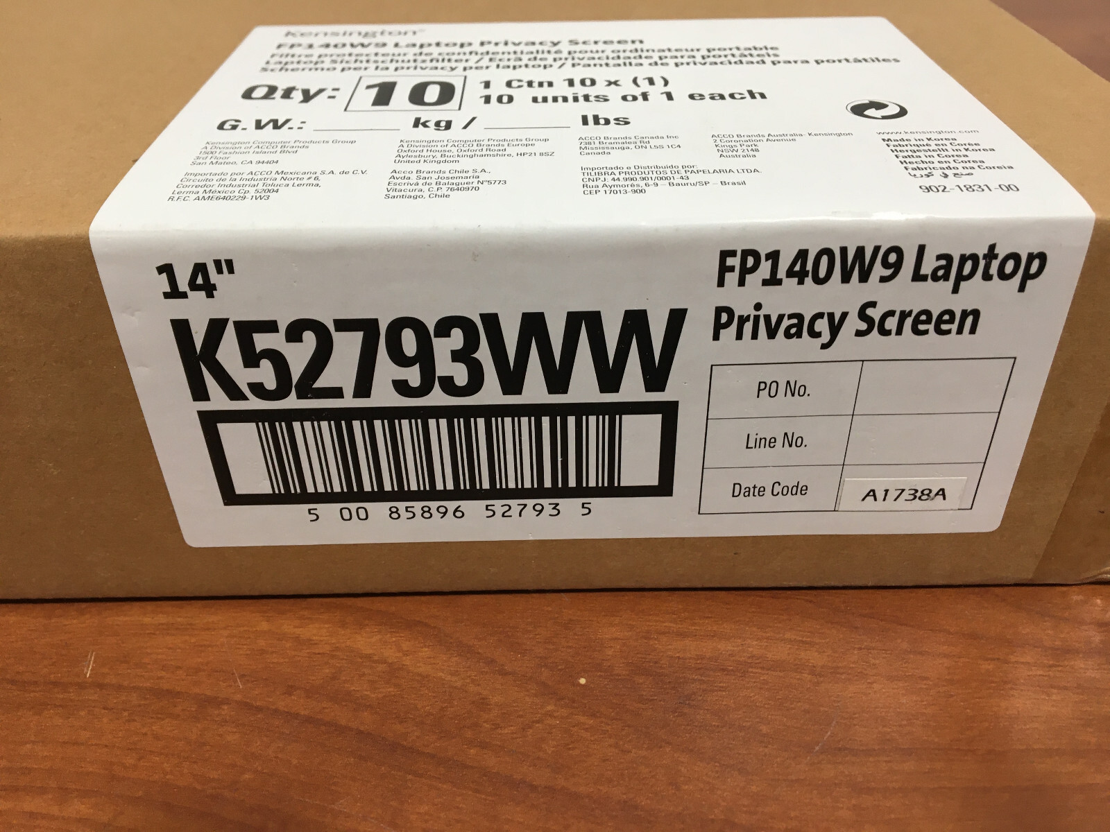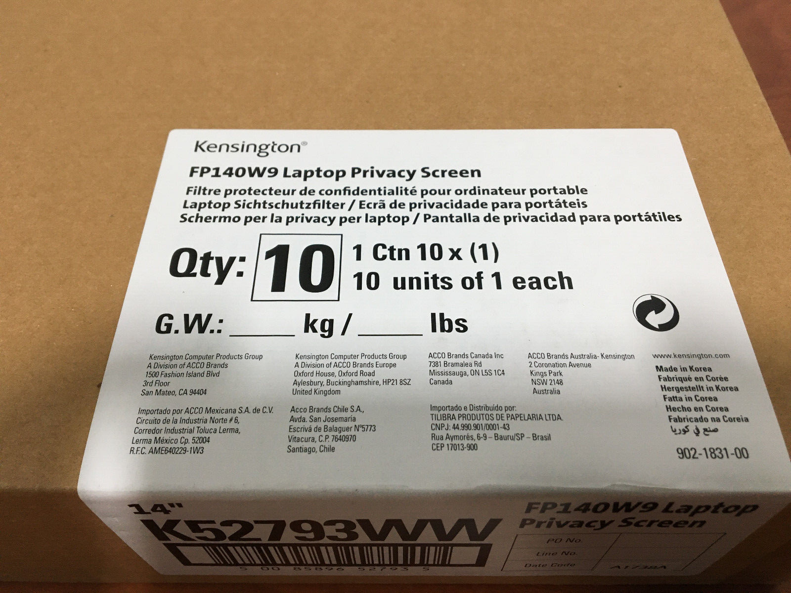 Lot of 10 Kensington 14 Laptop Privacy Screen Filter FP140W9 - 16:9 Aspect Rati