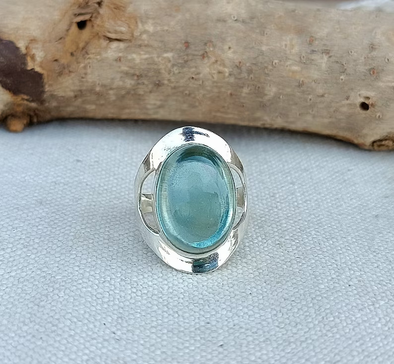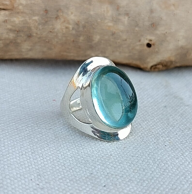 как выглядит Aquamarine 925 Sterling Silver Wide Band Statement Ring Handmade Ring All Size фото