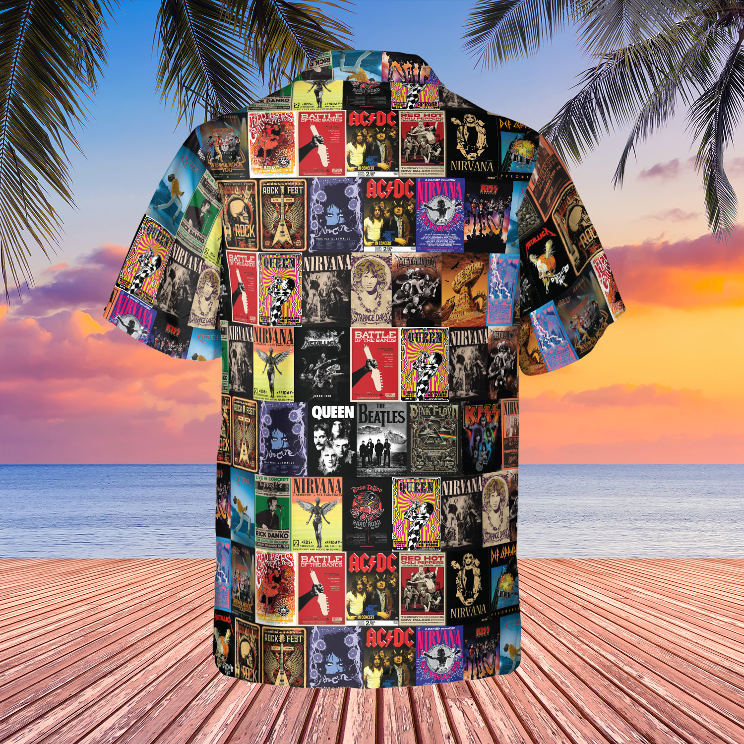 как выглядит 80s rock band hawaiian shirt, Band Music Rock Punk Heavy Metal, retro, gen X фото