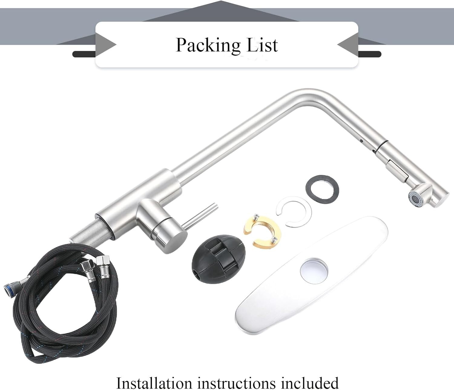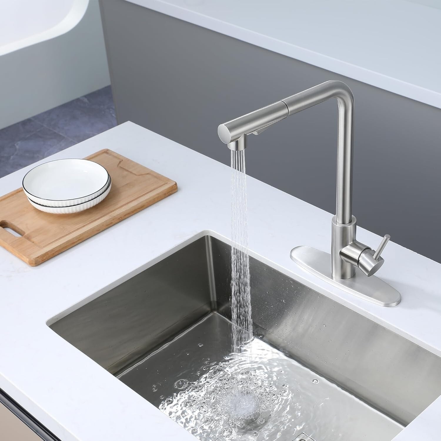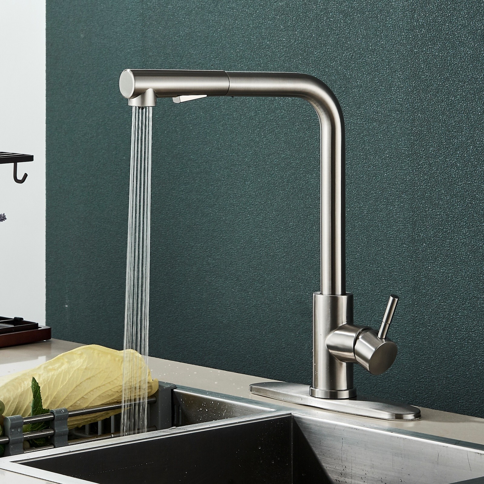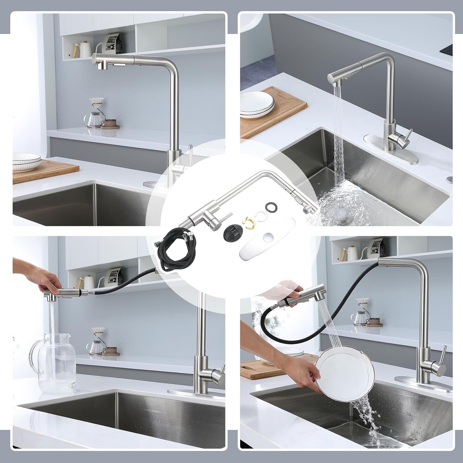 Brushed Nickel Kitchen Sink Faucet Single Handle Mixer Tap with Pull Out Sprayer