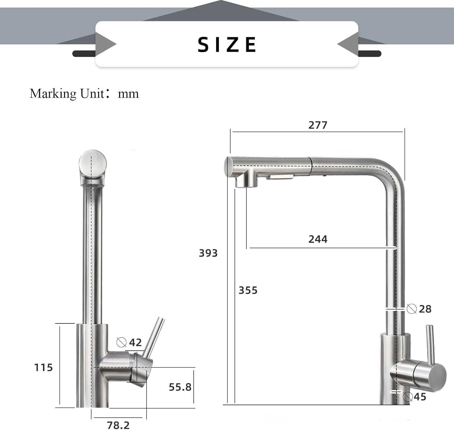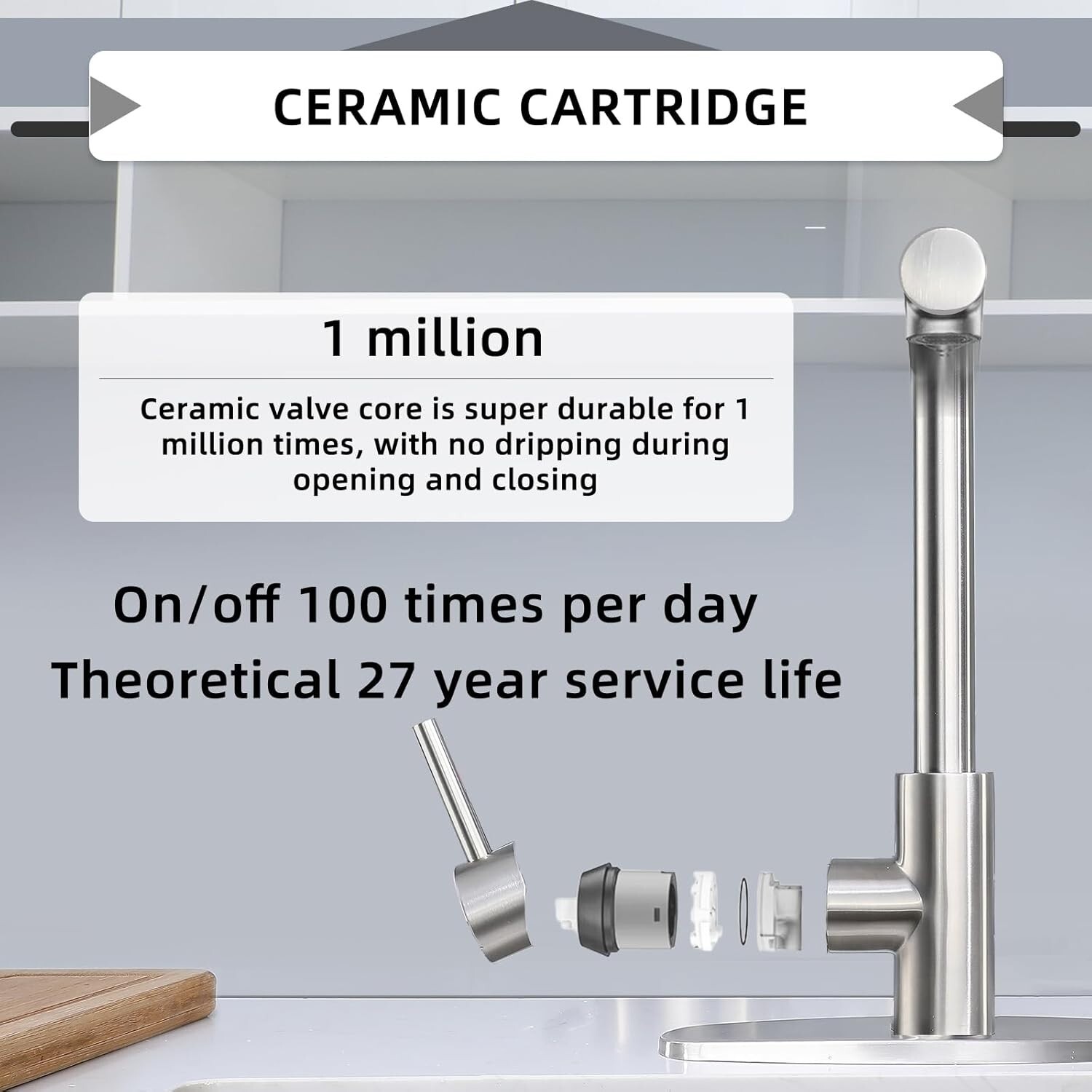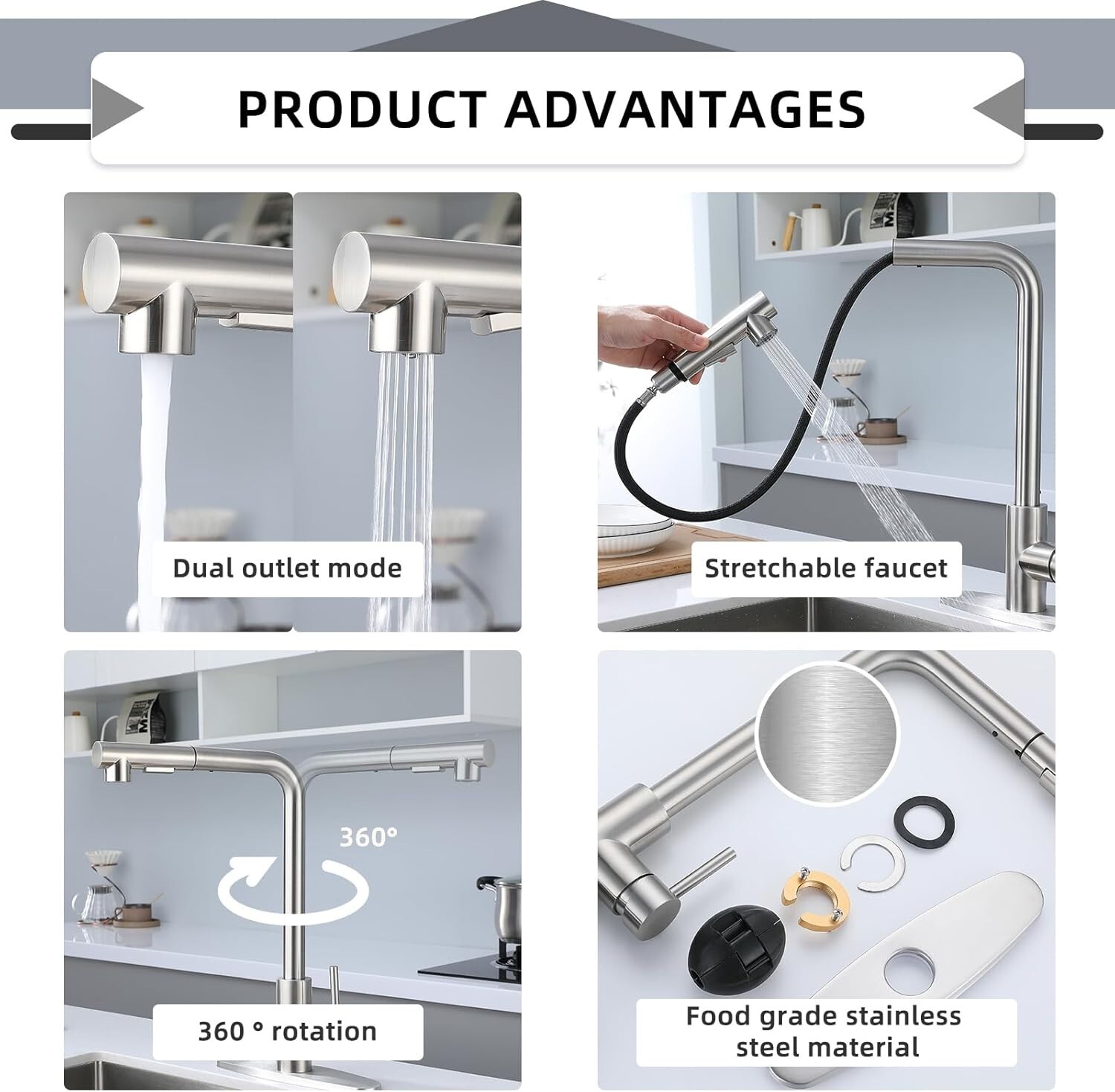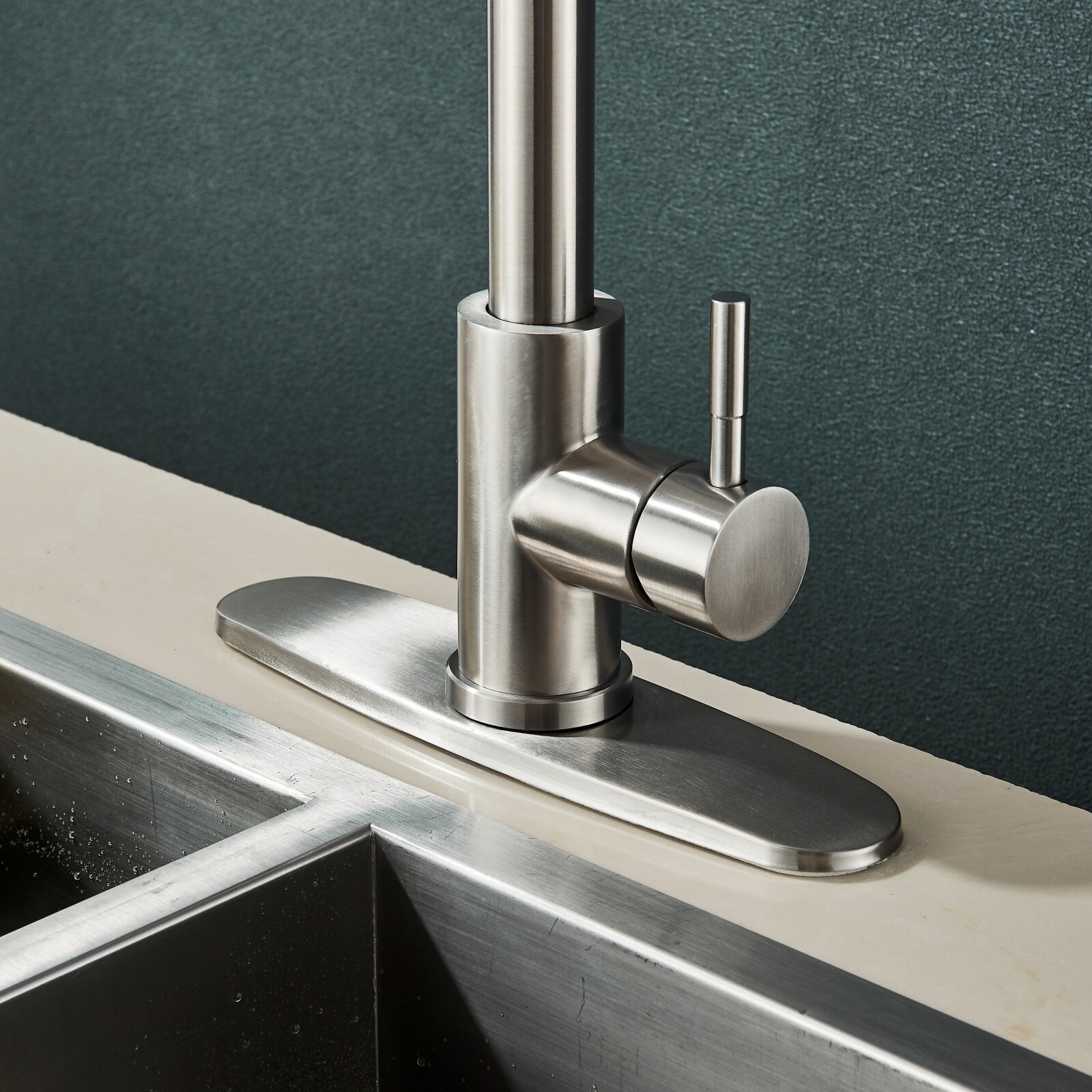 Brushed Nickel Kitchen Sink Faucet Single Handle Mixer Tap with Pull Out Sprayer