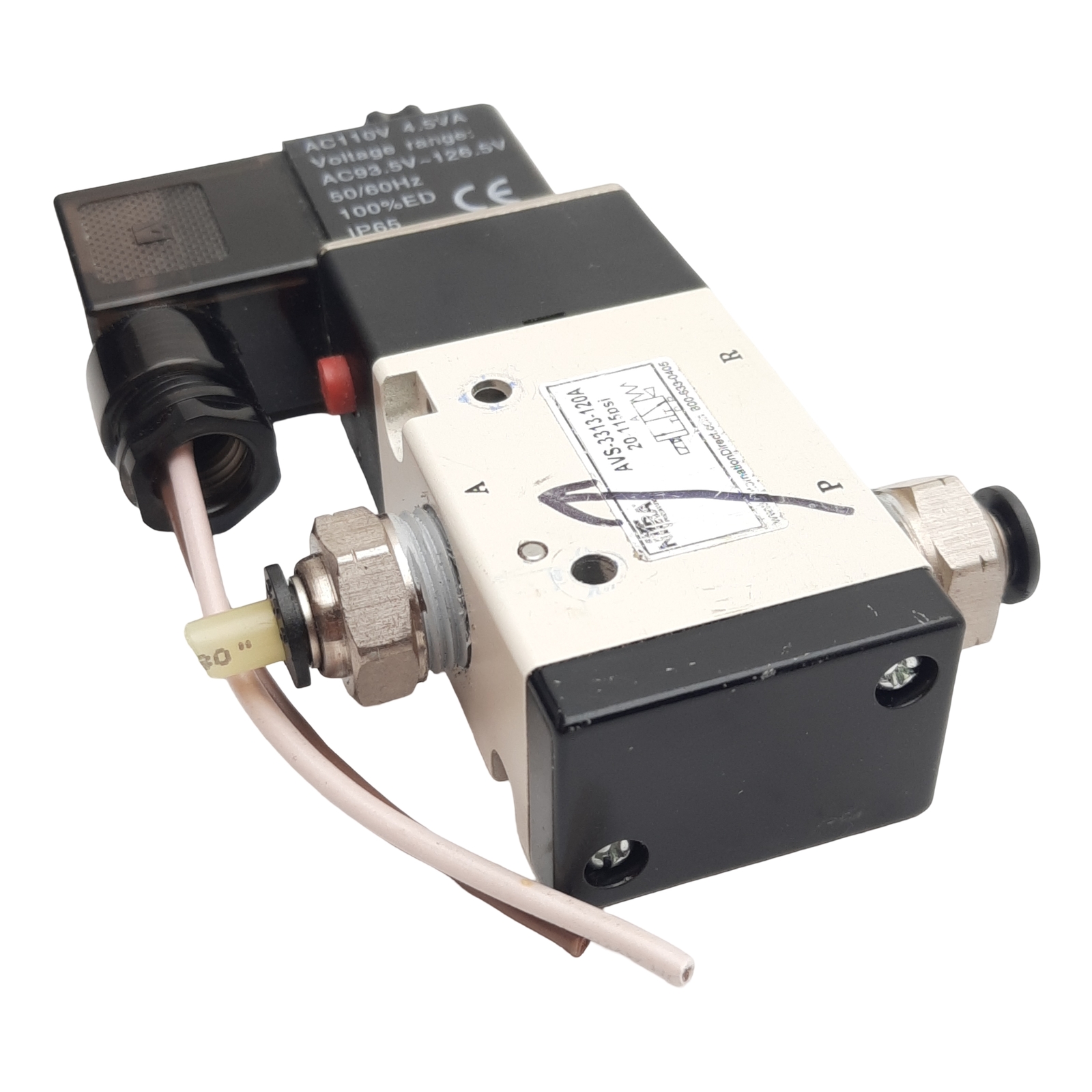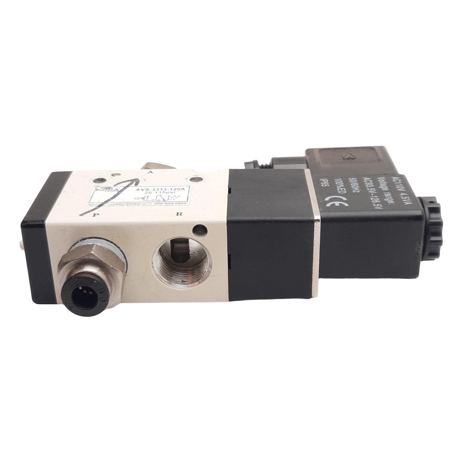• Nitra AVS-3313-120A Solenoid Valve, 3-Way 1NC, 20-115psi, 3/8in NPT, 120VAC Coil