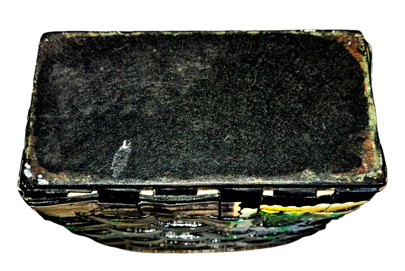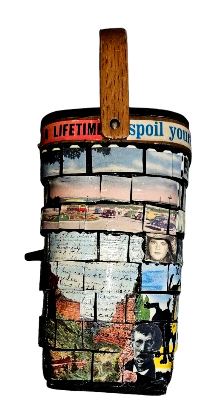 как выглядит HANDMADE Vintage 1960 CARO NAN Signed Woven Wooden VACATION Theme Basket Handbag фото