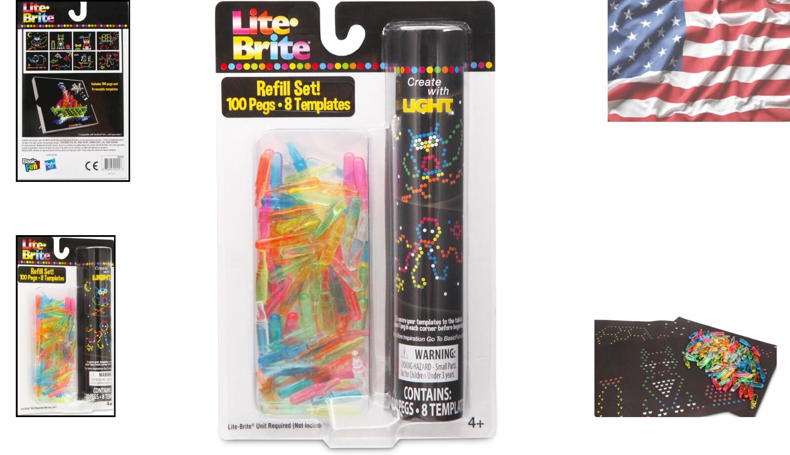 Lite-Brite Peg and Template Refill Pack - 100 Colorful Pegs for Creative Kids